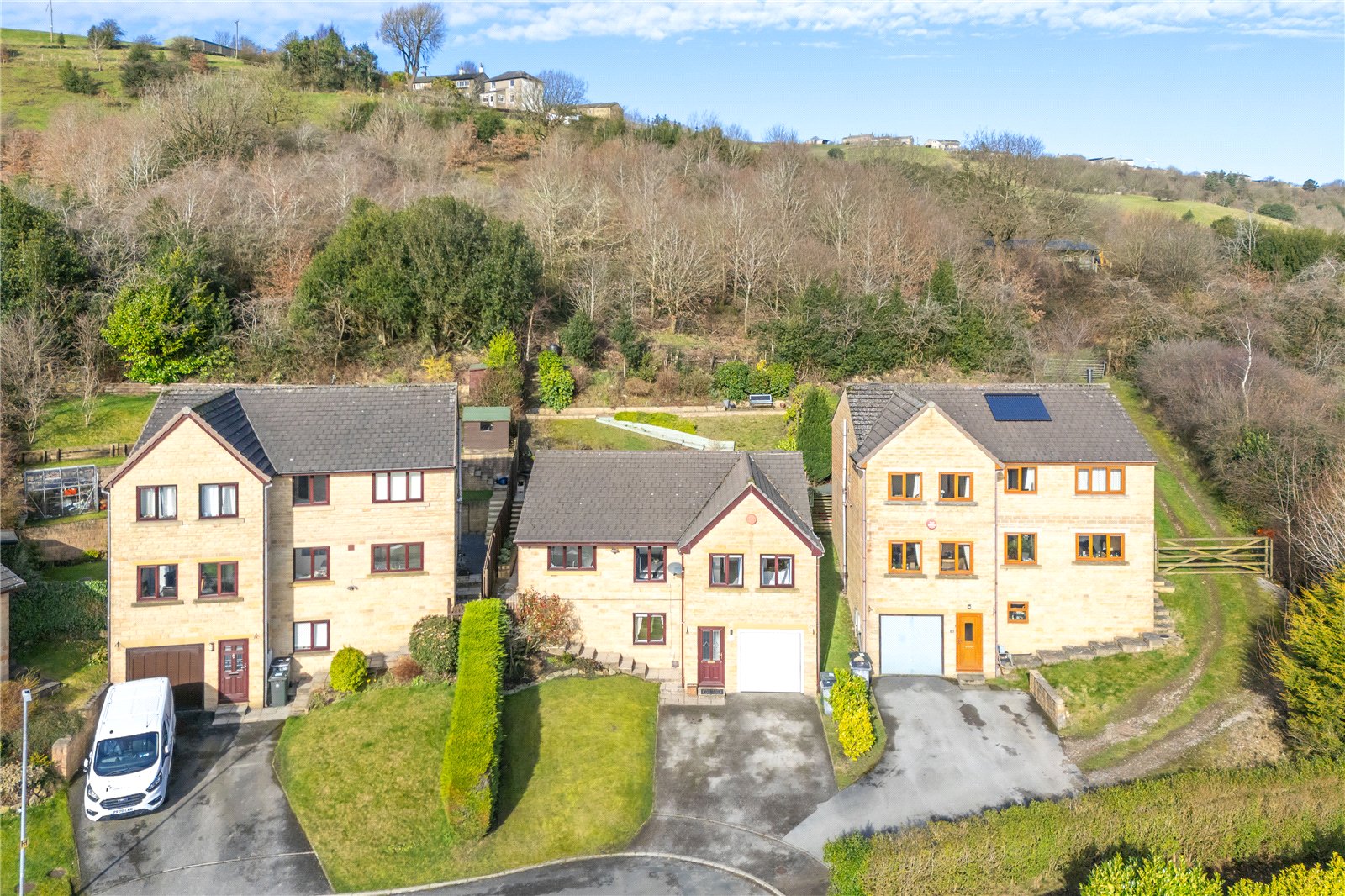 From Town End in the centre of Golcar, head along Swallow Lane, then turn right onto Banks Road. Follow the road down and round until you find Banks Drive on the left. Turn up Banks Drive and follow the road to the top where you will see Ashford Park in front of you. Take the first left into the cul-de-sac and follow the road up and round where you will find No.31 at the head of the cul-de-sac.