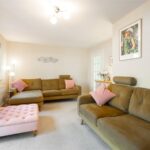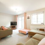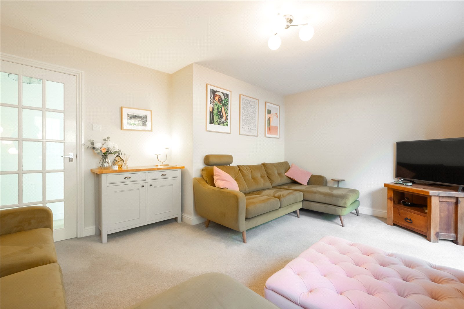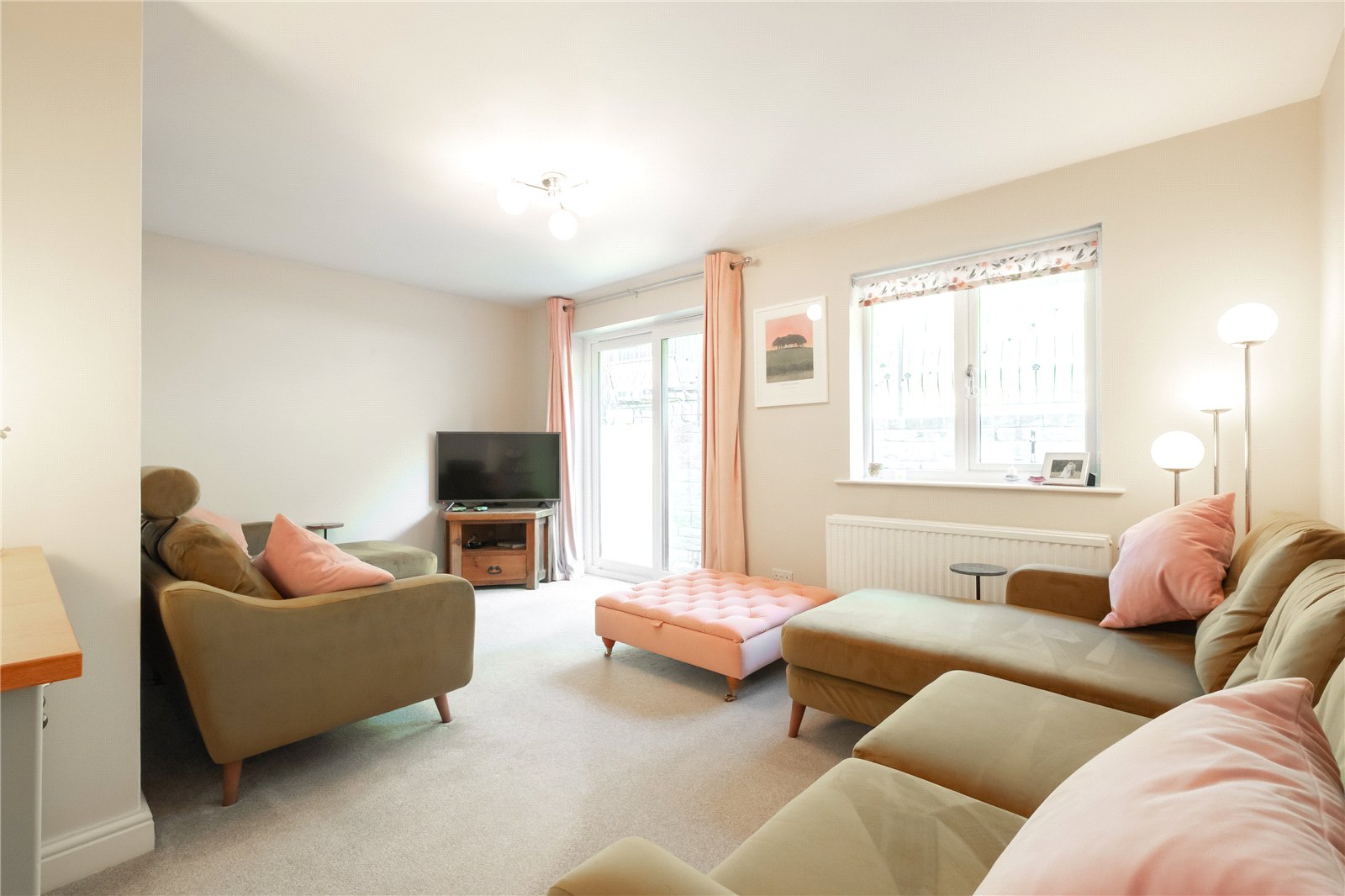 A very pleasant room with window and sliding patio doors offering views of the garden and leading out to the flagged patio.