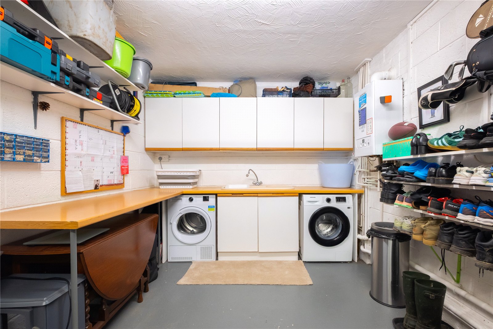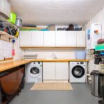 With a recently installed electric door to the front, personnel door into the ground floor hallway, recently replaced wall mounted central heating boiler, and fitted with a run of wall and base units with ample worktops which incorporate a 1½ bowl sink with mixer tap with space for a washing machine and tumble dryer.