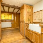 Currently fitted with a range of wall and base units and worksurfaces incorporating a ceramic sink.