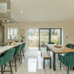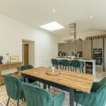 The kitchen is located within a single storey extension at the rear of the building high inset rooflights and spotlights to the ceiling, tiled floor, central heating radiator and bifolding doors opening to the garden. It is fitted with high quality modern units by SieMatic with integrated double oven, fridge freezer, dishwasher and inset 1 ½ bowl stainless steel sink with mixer tap. There is an island unit with induction hob and extractor over, overhanging breakfast bar and wine cooler.