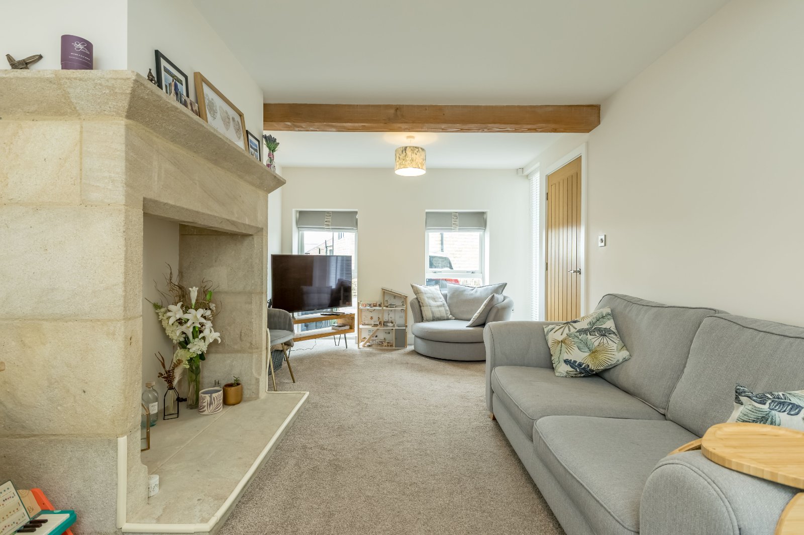 With 2 tall windows to the front, exposed beams to the ceiling, chimney breast with stone fireplace and central heating radiator.