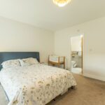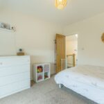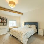 A double bedroom with window to the front, beam to the partly angled ceiling and central heating radiator.