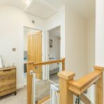 With glazed balustrade around the stairs, rooflight to the partly angled ceiling, loft access and central heating radiator.