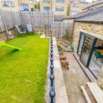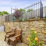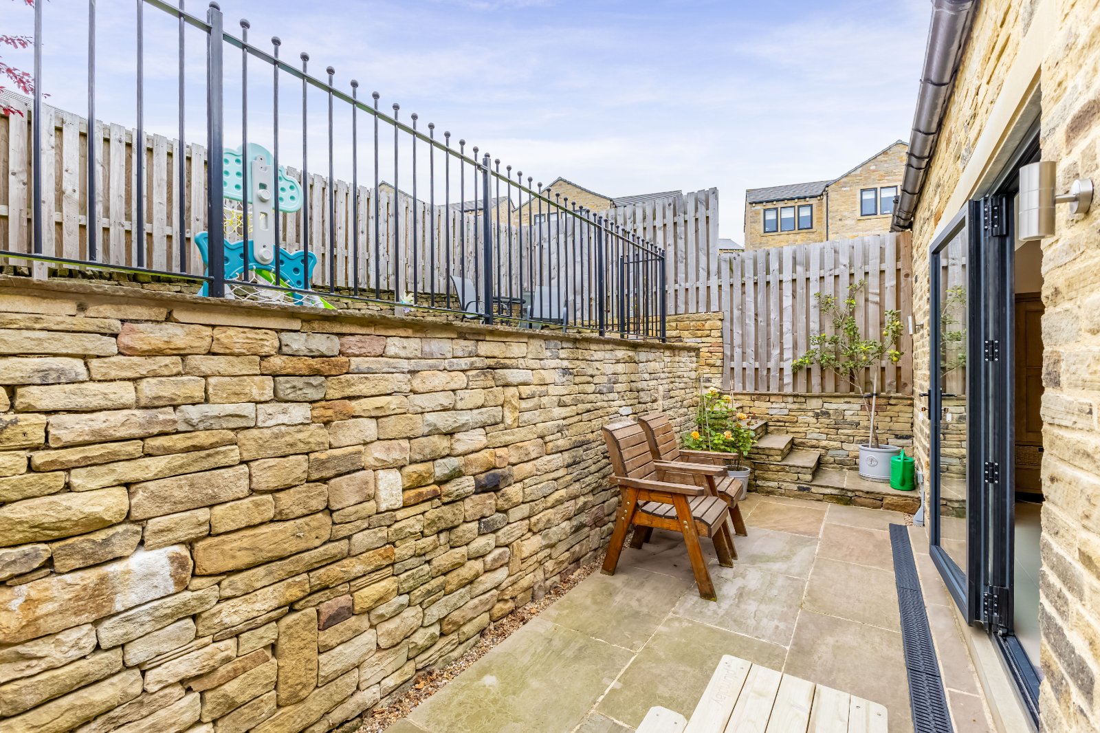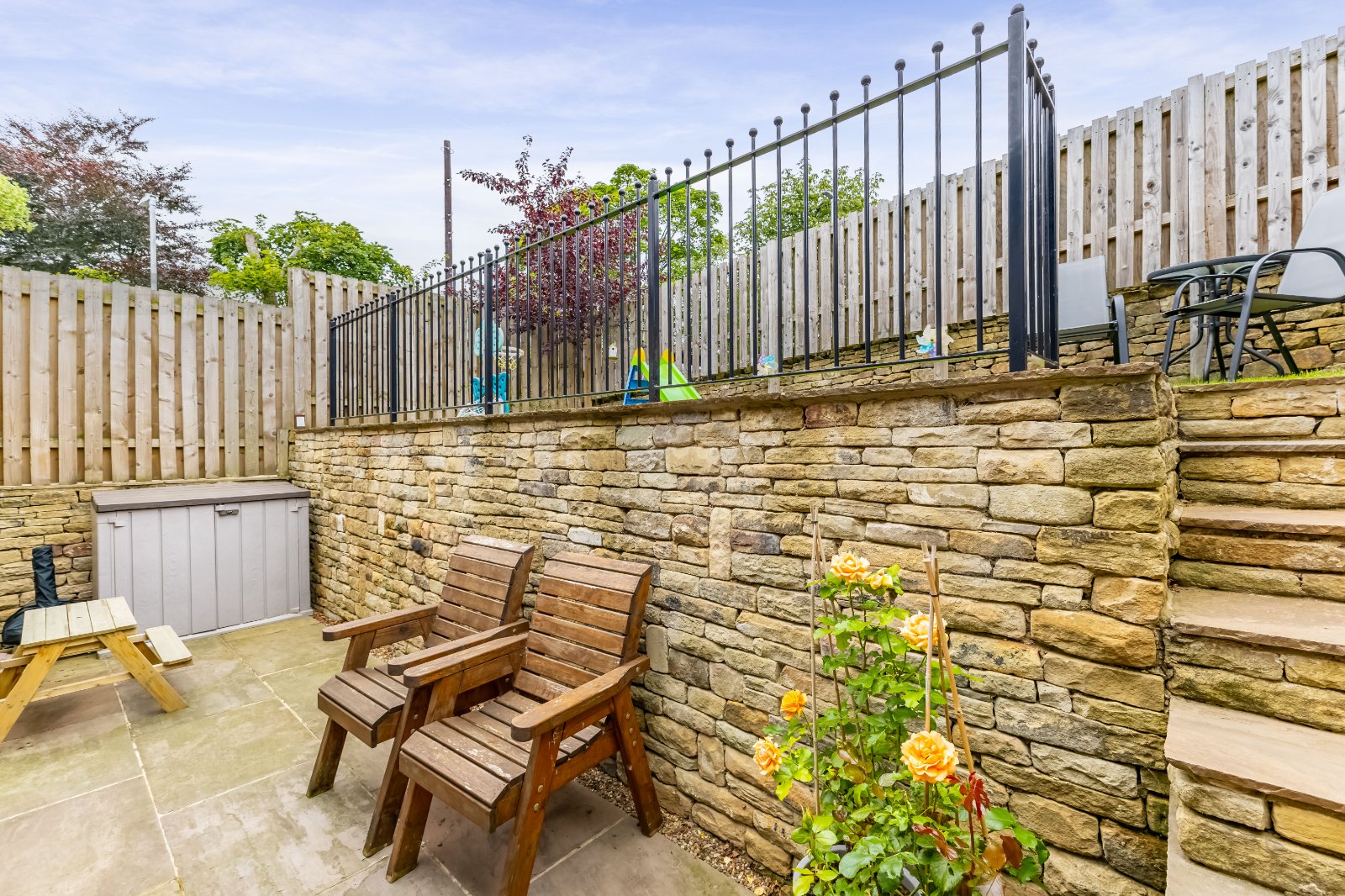 To the rear of the house there is an easy maintenance garden area over 2 levels this features a paved seating area off the kitchen with stairs leading up to a further lawned area with dry stone wall surround and a wrought iron railing.