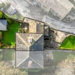 From the lane there is a stone paved parking area with lawned garden area beyond and a large stone paved seating areas along the rear of the house.