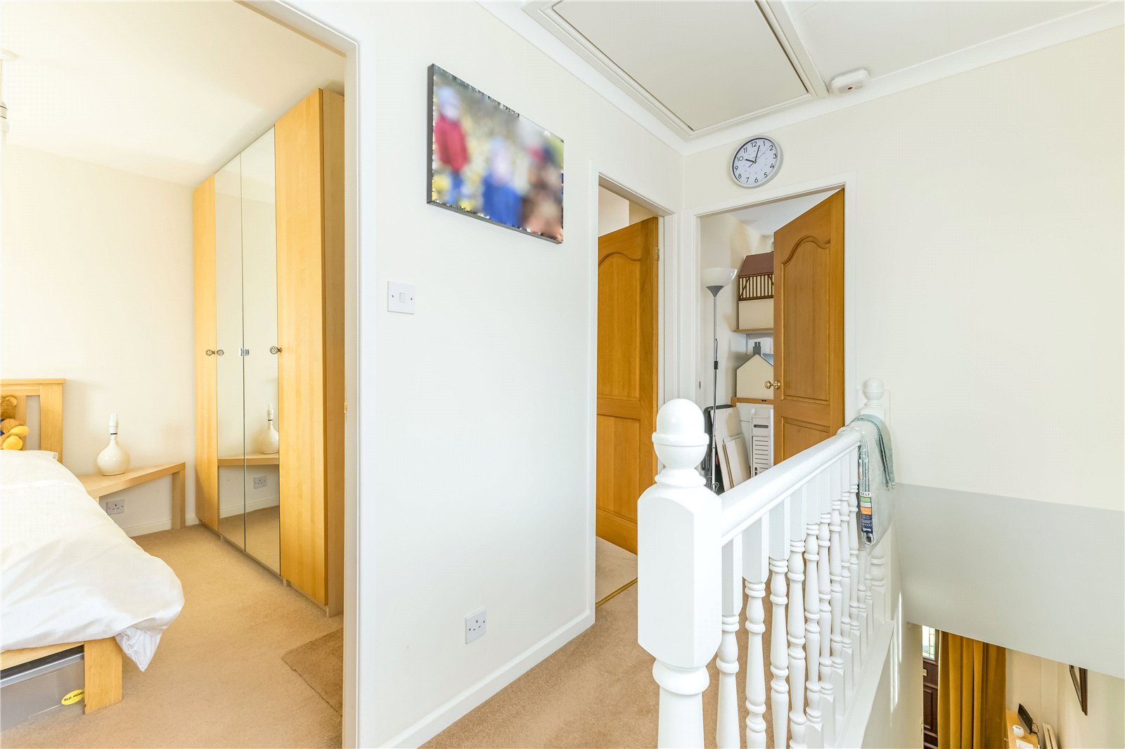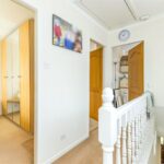 Having timber balustrading and newel posts around the top of the staircase, window to the side, ceiling coving, and pull down loft access.