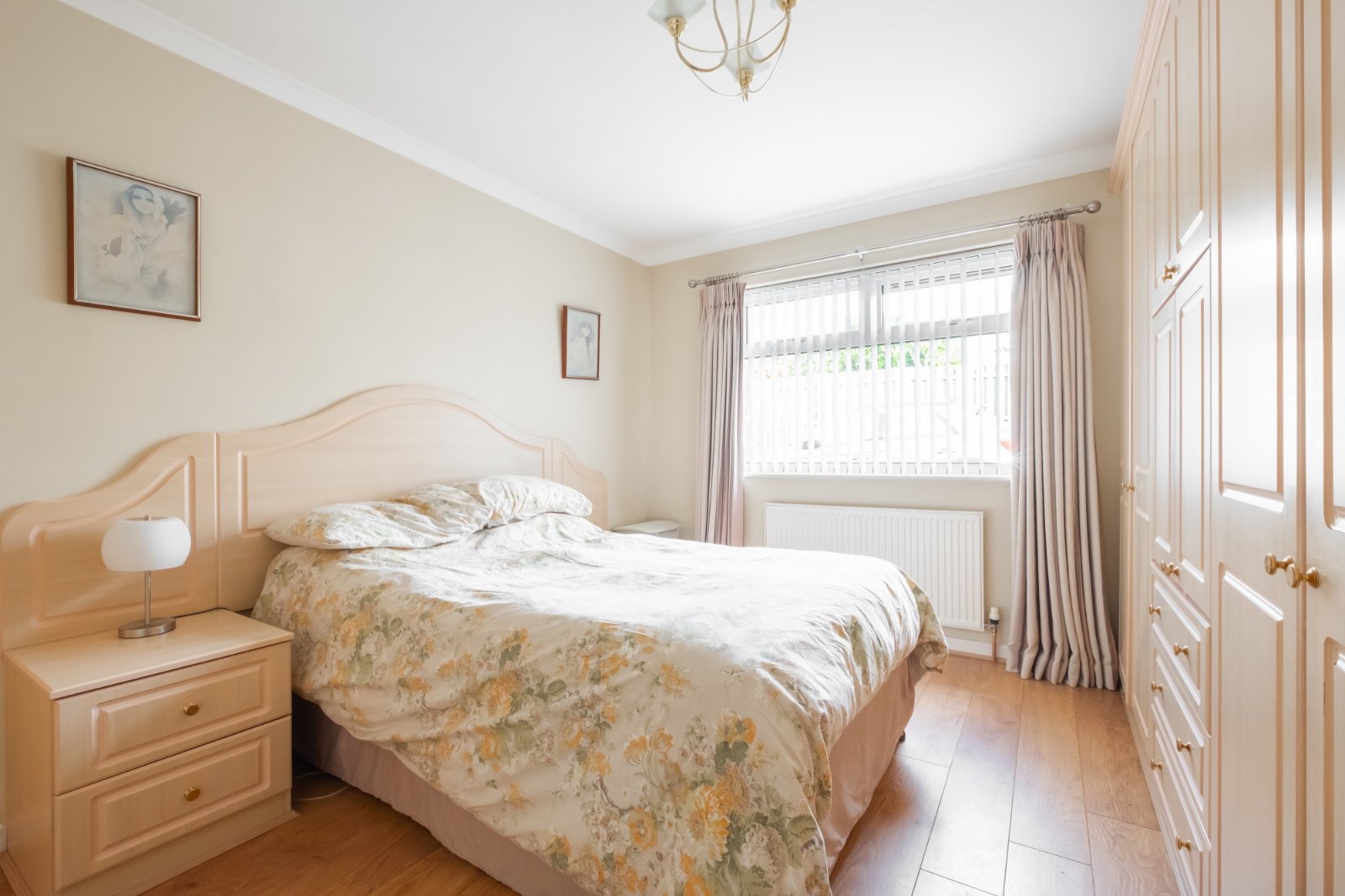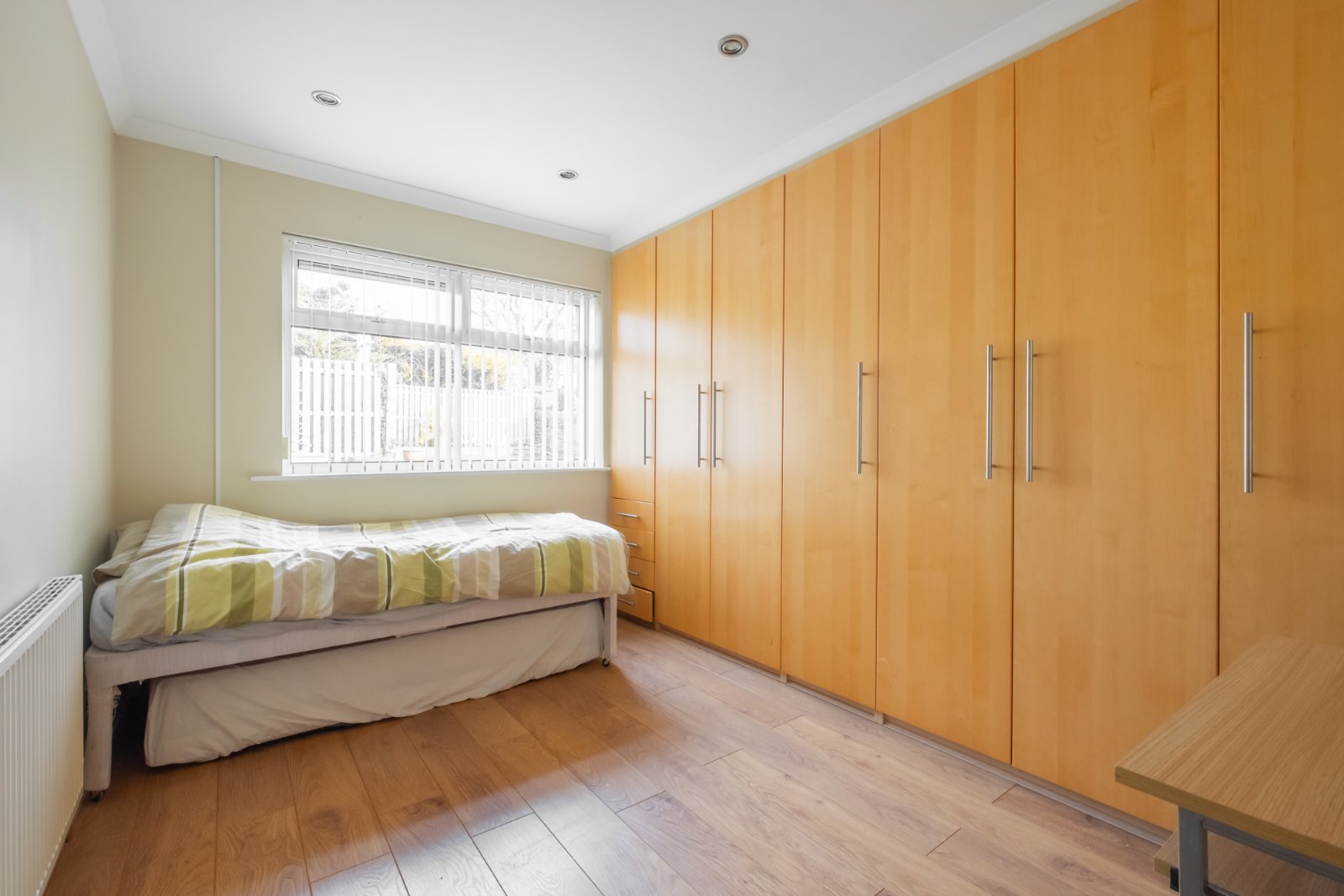 A double bedroom with window to the front, fitted wardrobes and central heating radiator.