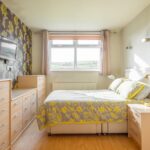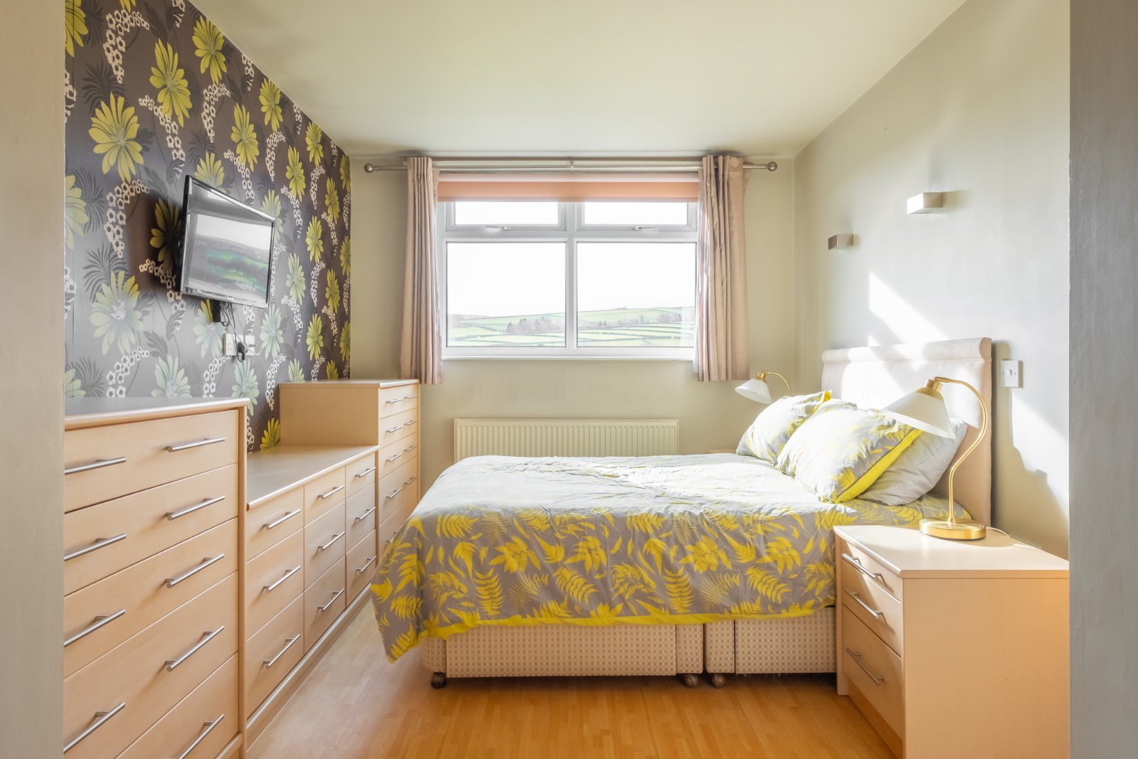 A double bedroom with window to the rear enjoying the views, fitted drawers and central heating radiator.