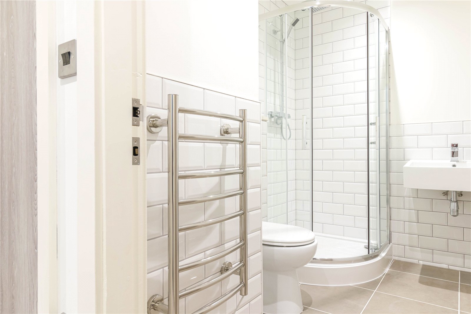 Number 7 is to be found on the upper ground floor and shares an entrance with the other properties on this floor and the floor above. The glazed entrance door is activated by a keypad entry system and can also be opened via an intercom within the apartment.