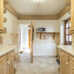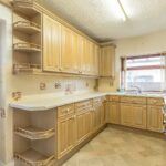 With fitted base units and wall cupboards, laminated worksurfaces, 1 ½ bowl stainless steel sink unit with mixer tap, window and door to the rear, central heating.