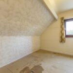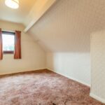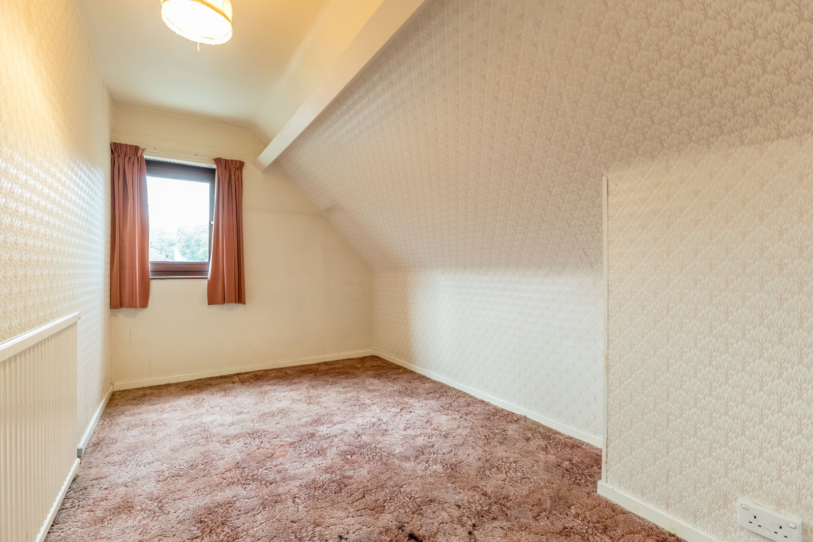 A double bedroom with partly angled ceiling, window to the side and central heating radiator.