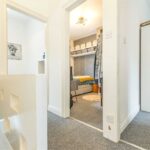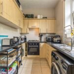 Fitted with a range of units and work surfaces which incorporate a stainless steel sink with mixer tap. There is a 4-ring gas hob with extractor hood over, electric oven, space & plumbing for a washing machine, tiled splashbacks, tiled floor, wall mounted central heating boiler, and window to the rear offering woodland views. There is access down to a small cellar.