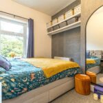 Having an electric fire with timber surround, wood effect flooring, and window to the front.