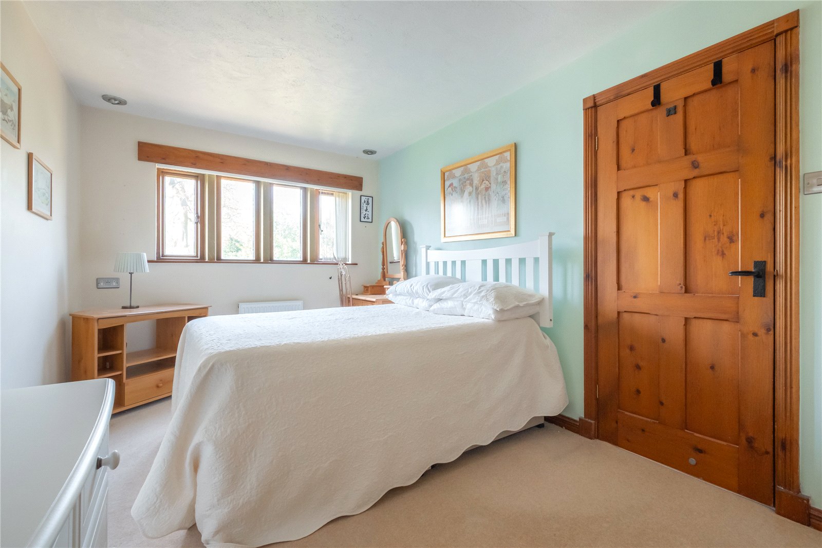 A large double bedroom which features a bank of windows to the rear elevation, fitted wardrobes and dressing table, central heating radiator.