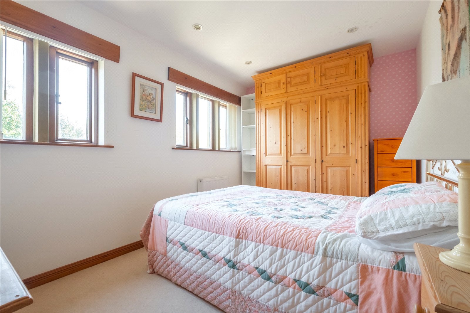 Another double bedroom with windows to the rear, spotlights to the ceiling and central heating radiator.