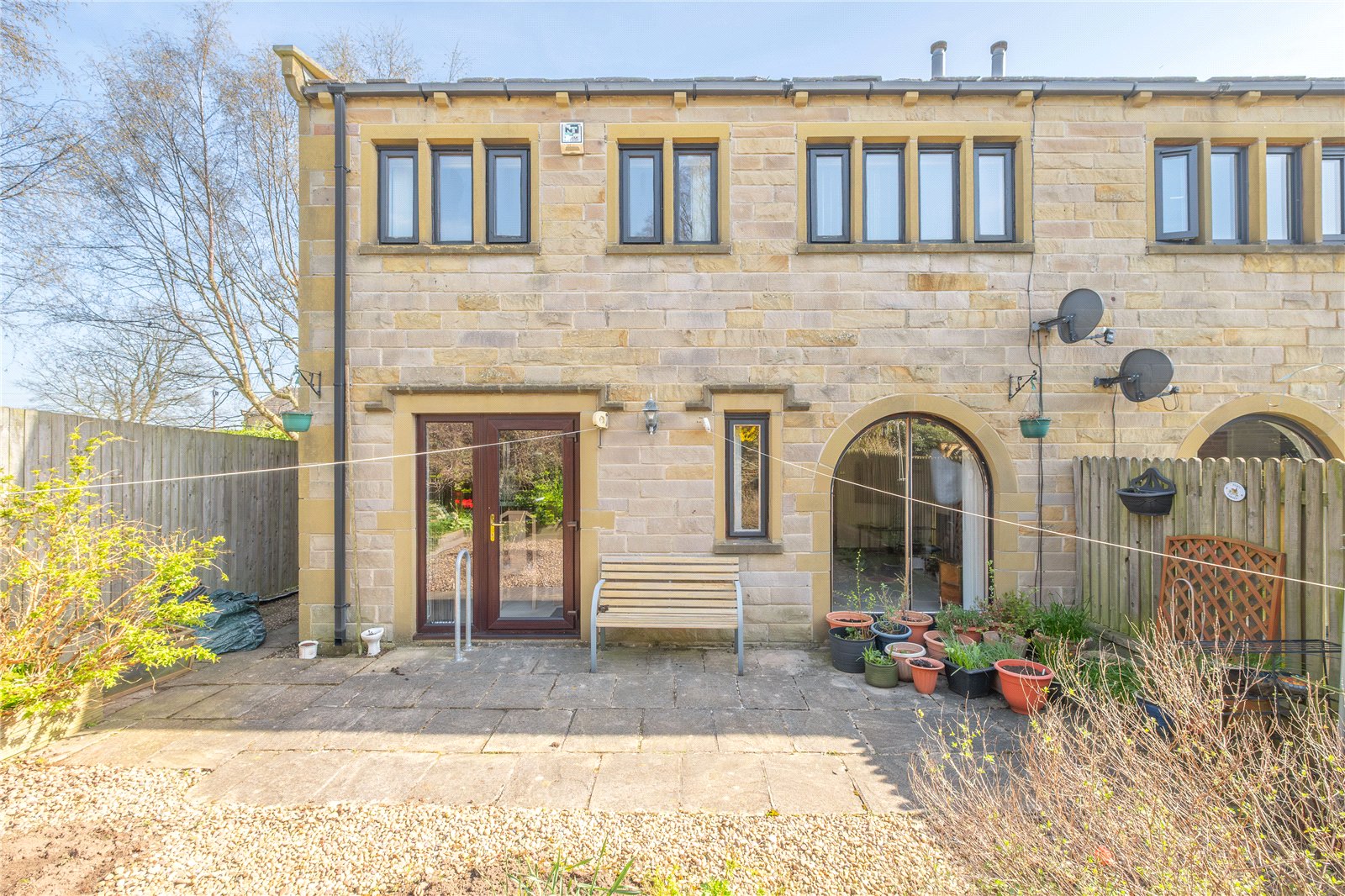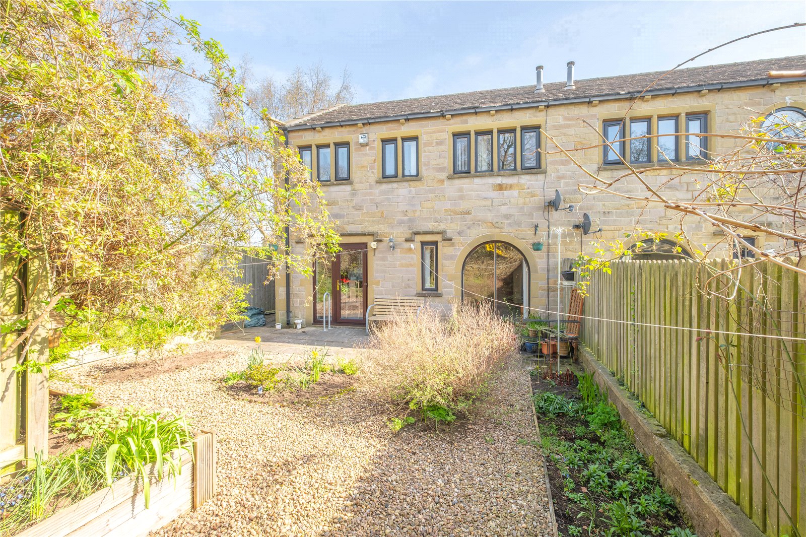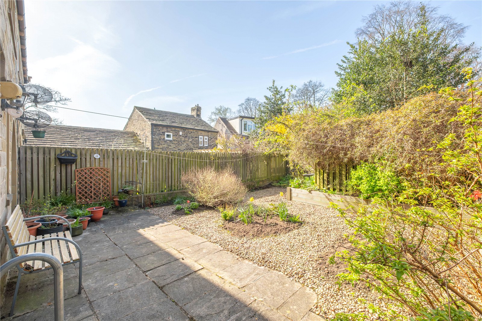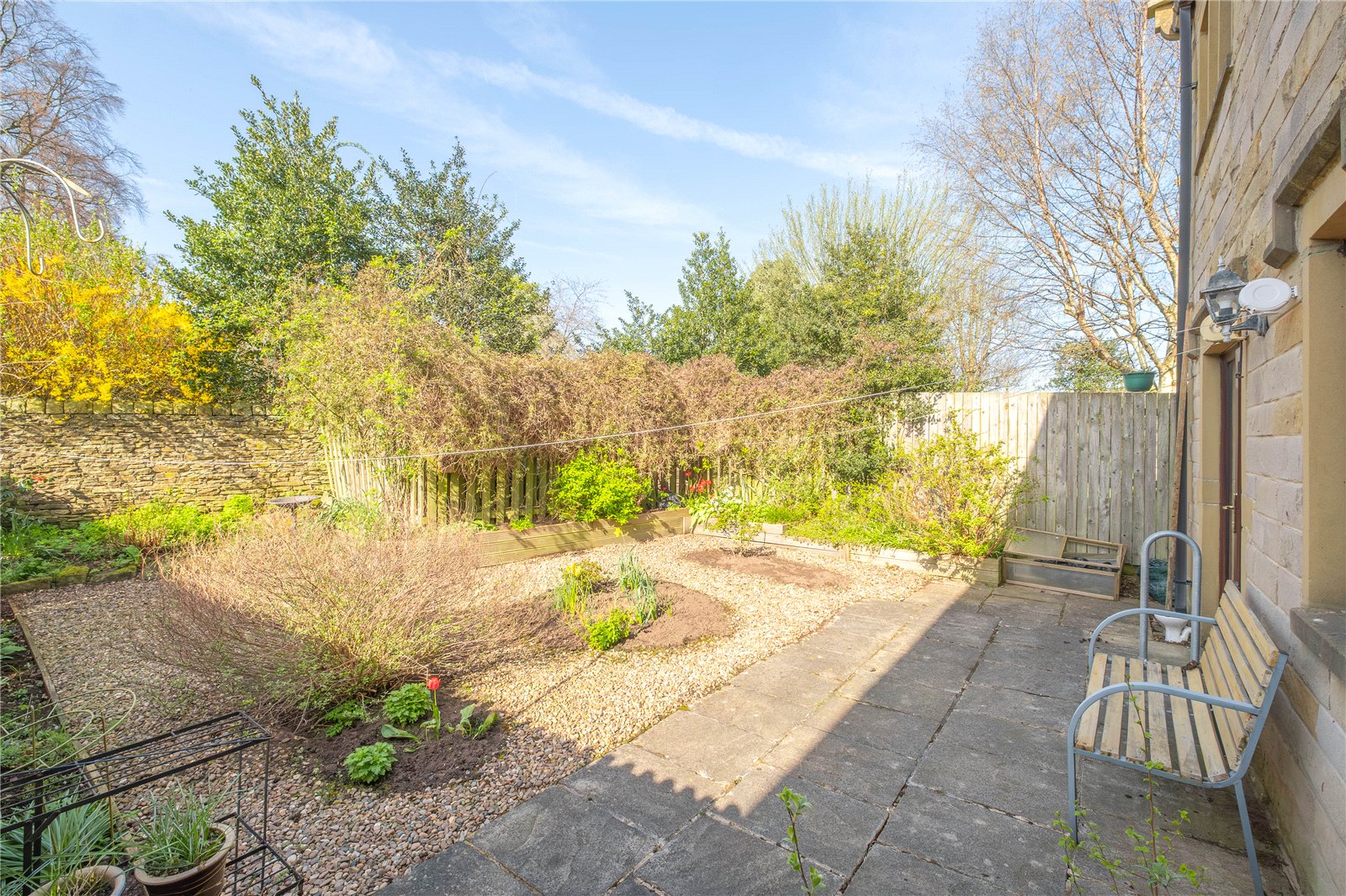 The garden is located to the rear of the house and has been landscaped for easy maintenance with gravelled areas and well planted borders.