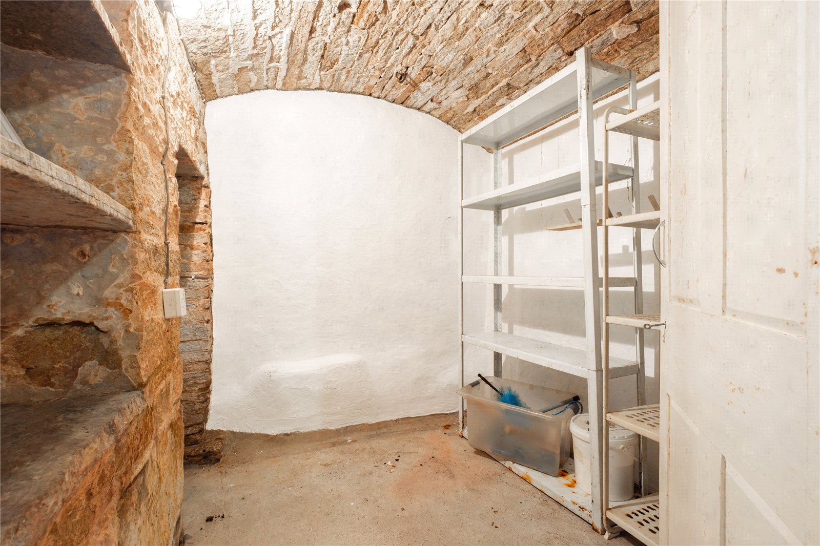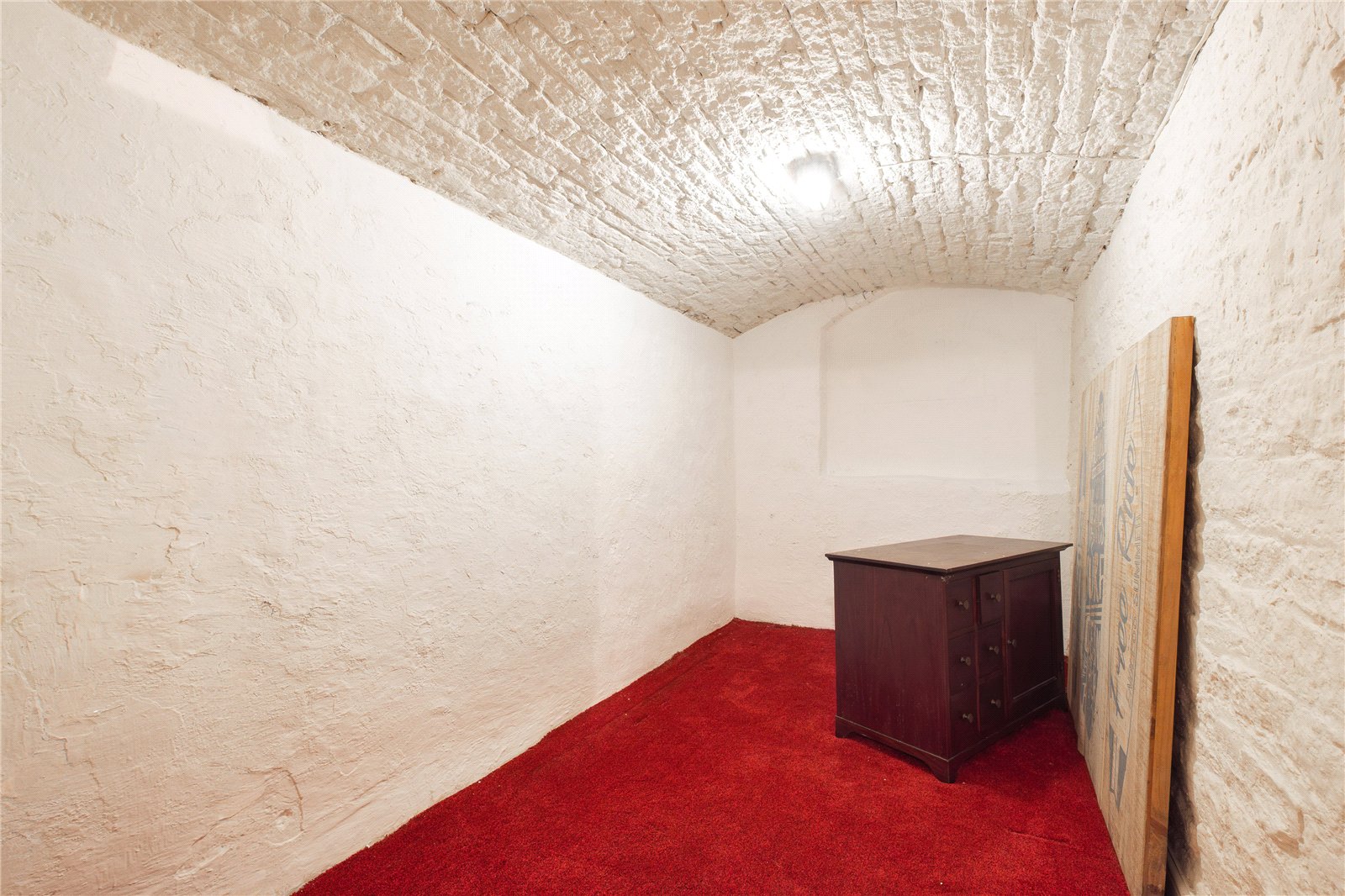 Stone stairs lead down to the cellar which features a stone floor and has been used for storage. It also features a data cabinet which is connected to the wiring.
