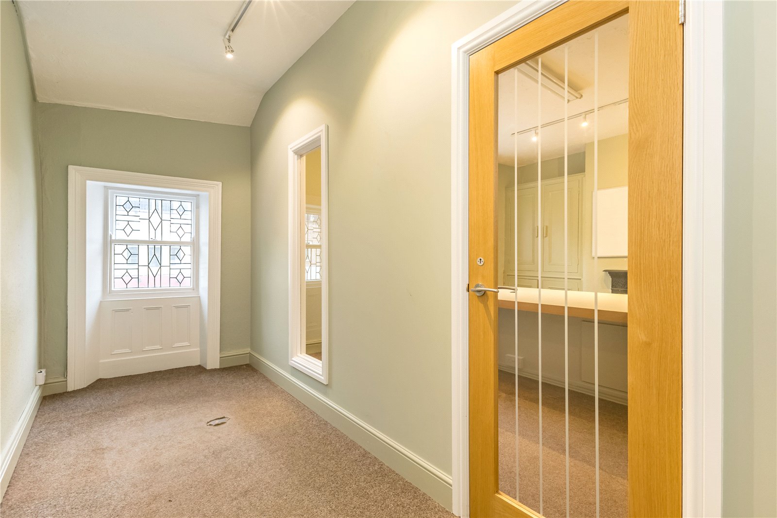 Open plan and up a step from the landing area. With 2 sash windows to the front, chimney breast with cast iron fireplace, built in cupboard to one side. Also featuring a bespoke desk unit.