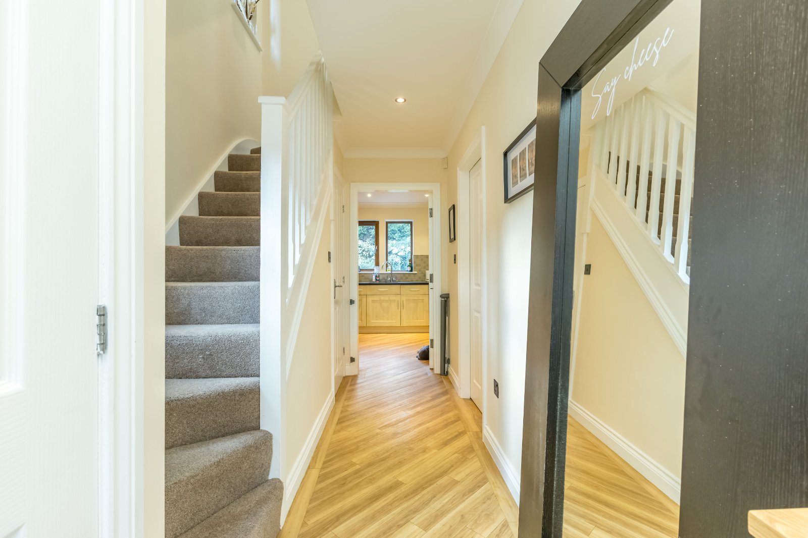 With quality LVT flooring, central heating radiator, inset spotlights to the ceiling and staircase leading to the first floor with storage cupboard under.