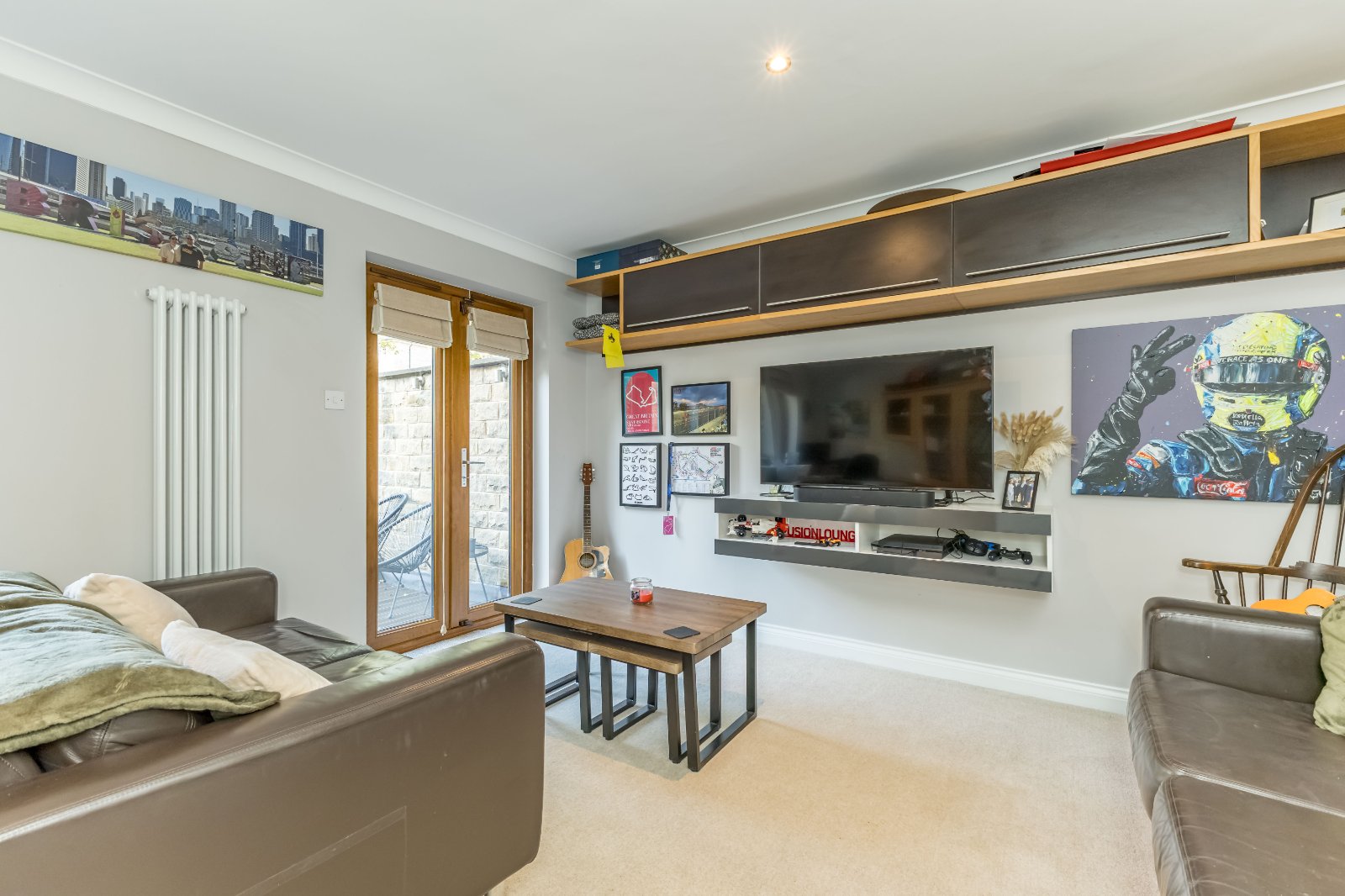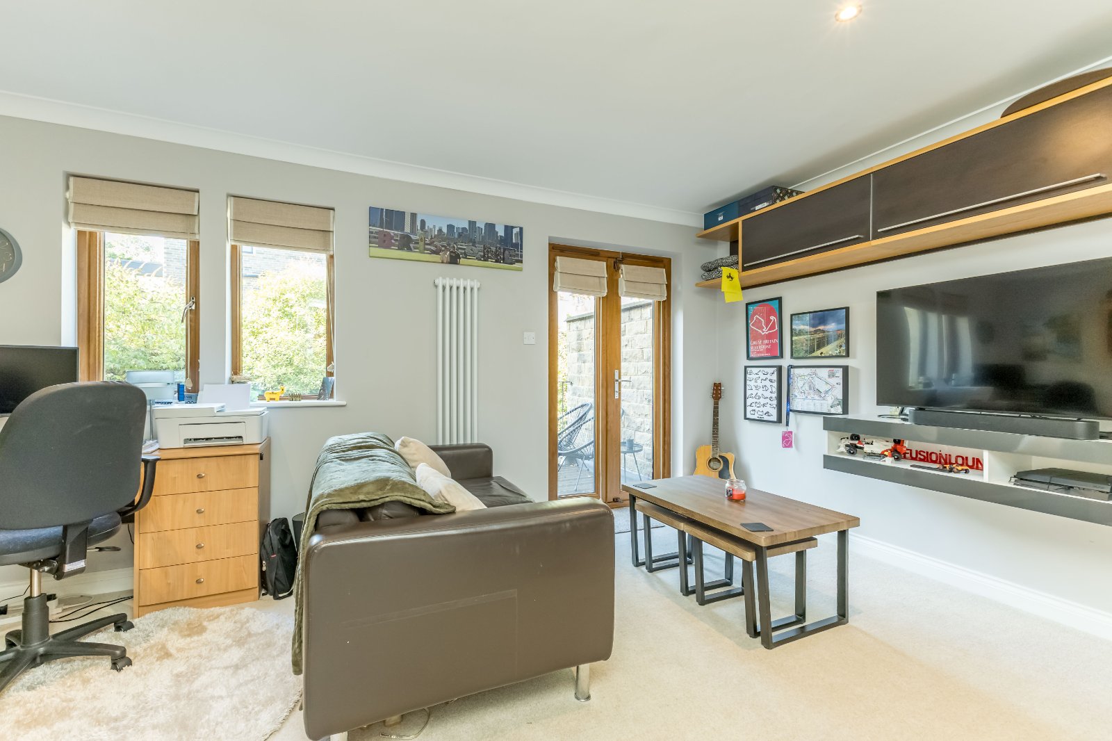 An additional living room which features windows to the rear and glazed double doors onto the terraced seating area, tall wall radiator.