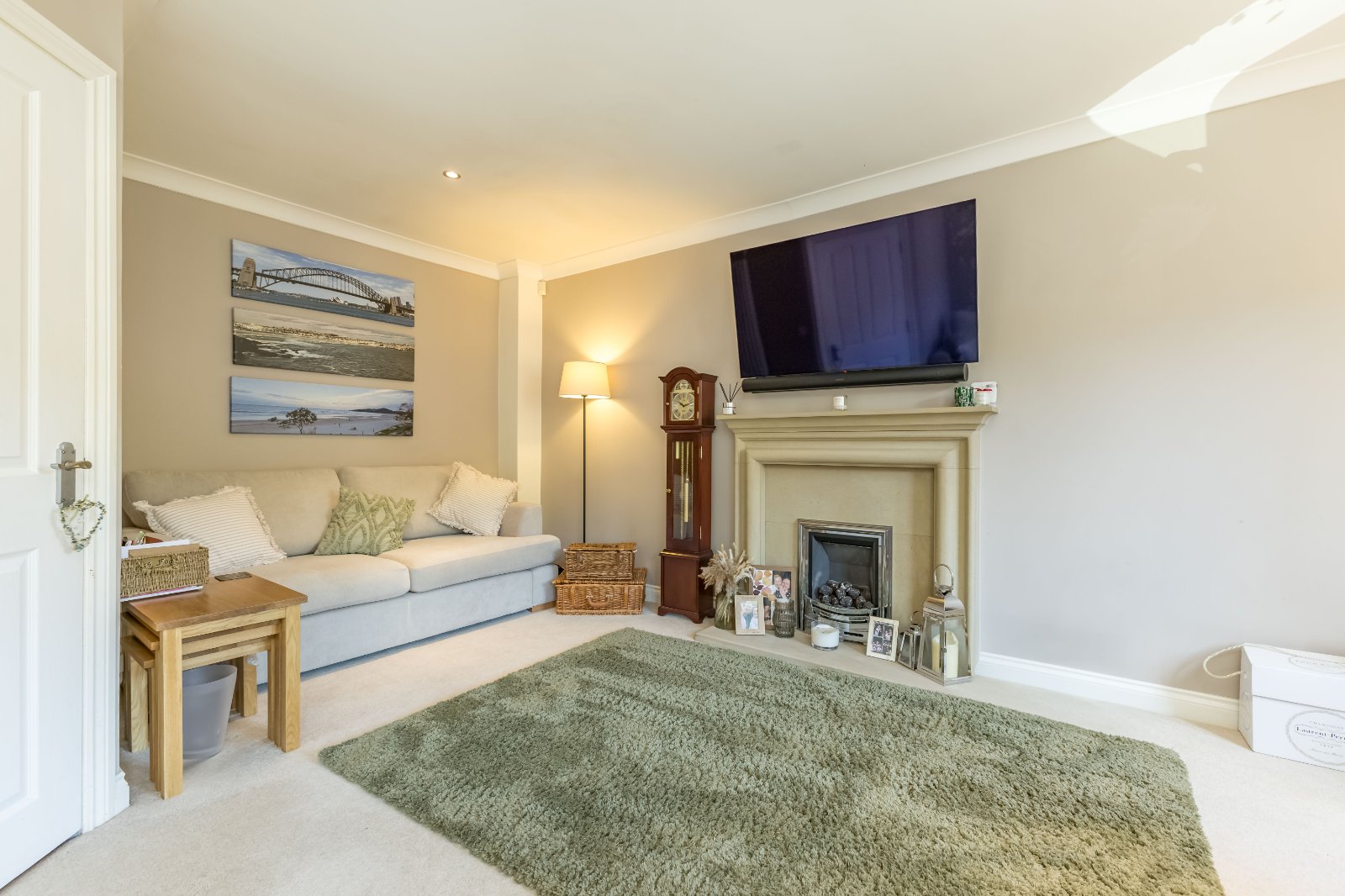 A large lounge windows to the front and glazed double doors to a “Juliette” balcony, feature stone fireplace with living flame effect gas fire, central heating radiator and additional tall wall radiator.