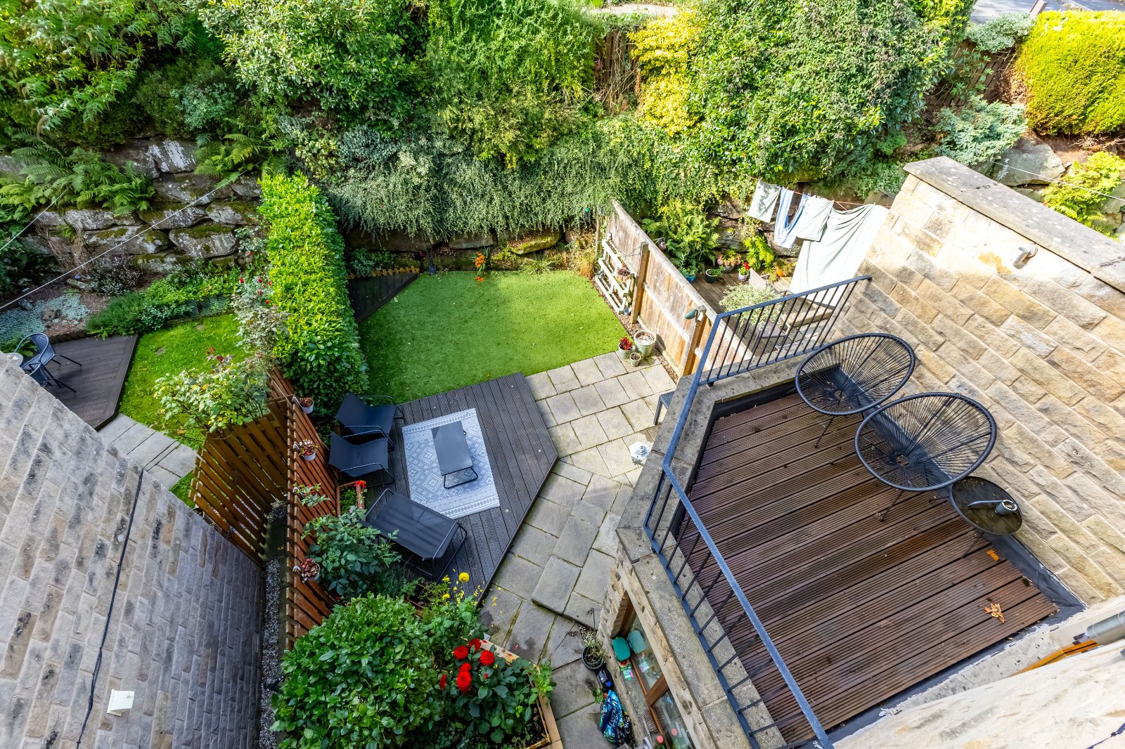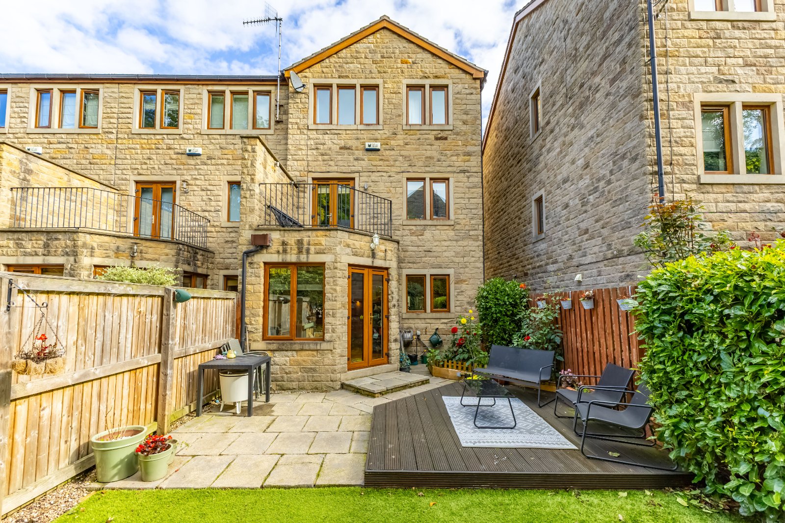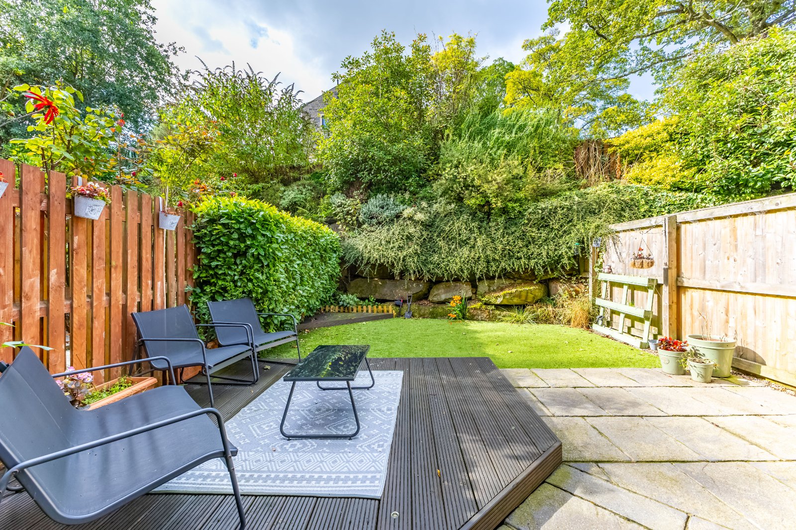 To the rear of the house, there is a pleasant enclosed garden with artificial lawn, paved seating, decking and planted borders.