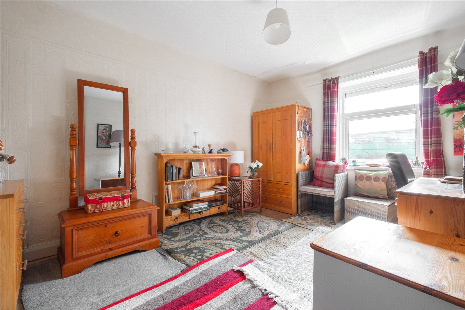 A smaller double bedroom with window to the rear and electric heater.