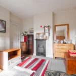 A double bedroom with window to the front enjoying the views, chimney breast with feature cast iron fireplace, electric heater.