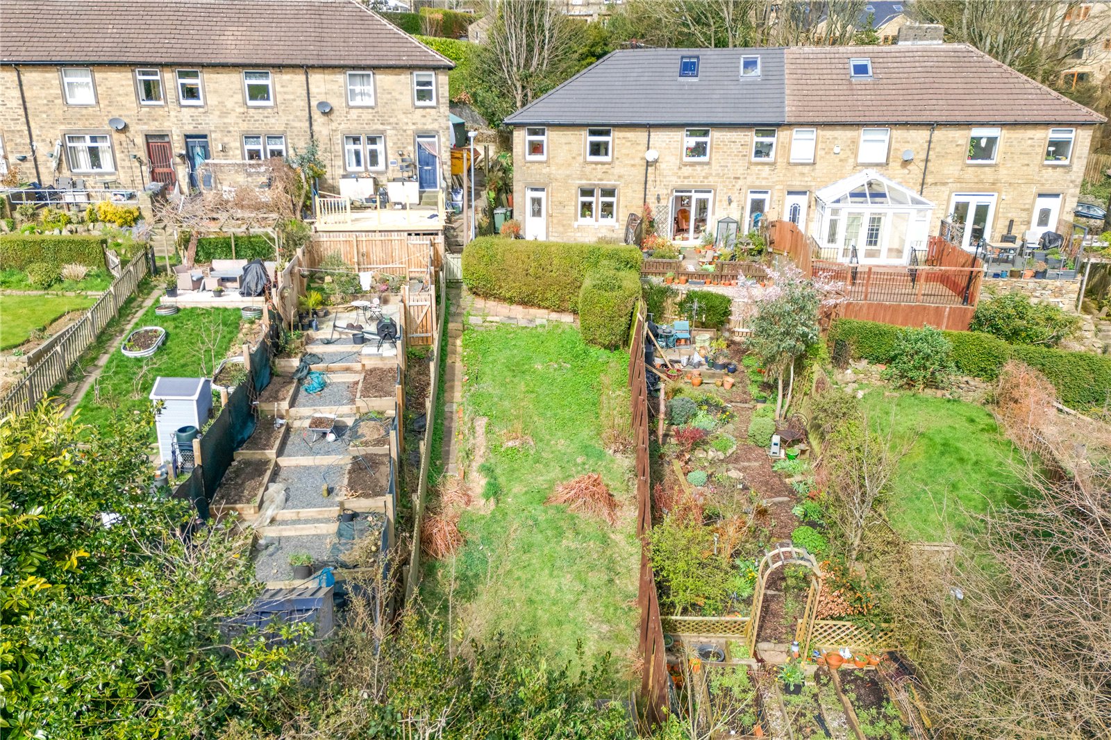 As referred to above, other properties in the row enjoy access over the path which runs between the garden and allotment. This path eventually leads down to Greenfield Road.