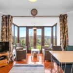 The property has been designed with the views in mind with the principal rooms facing the rear. It is single storey from the front elevation, whilst at the rear it is 2 storeys in height. It is entered via a central entrance porch into the main hallway where there are short flights of stairs up and down. The lounge is to be found on the upper level and features a range of windows enjoying the views, angled ceiling and a feature brickwork fireplace.