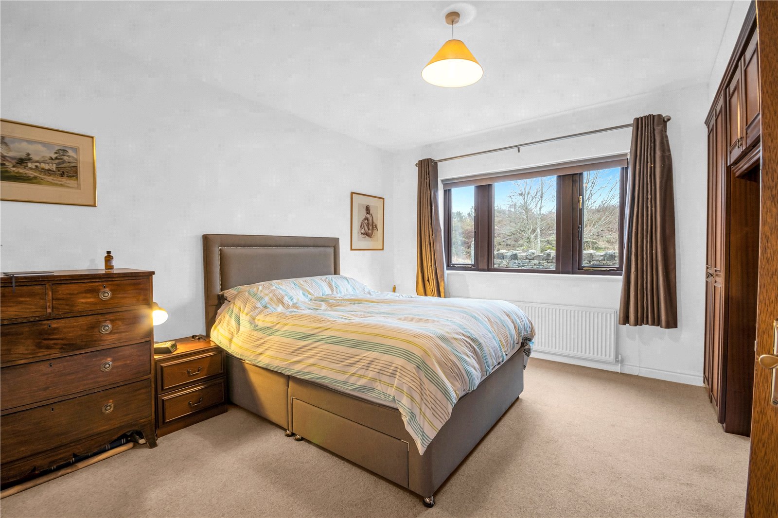 The principal bedroom is also located on the ground floor to the other side of the entrance door. This has fitted furniture and an en-suite shower room. The remaining rooms will be found on the lower ground floor level. There are 2 double bedrooms here with windows enjoying the views - bedroom 2 has an en-suite shower room. There is also a single bedroom / study and a house bathroom.