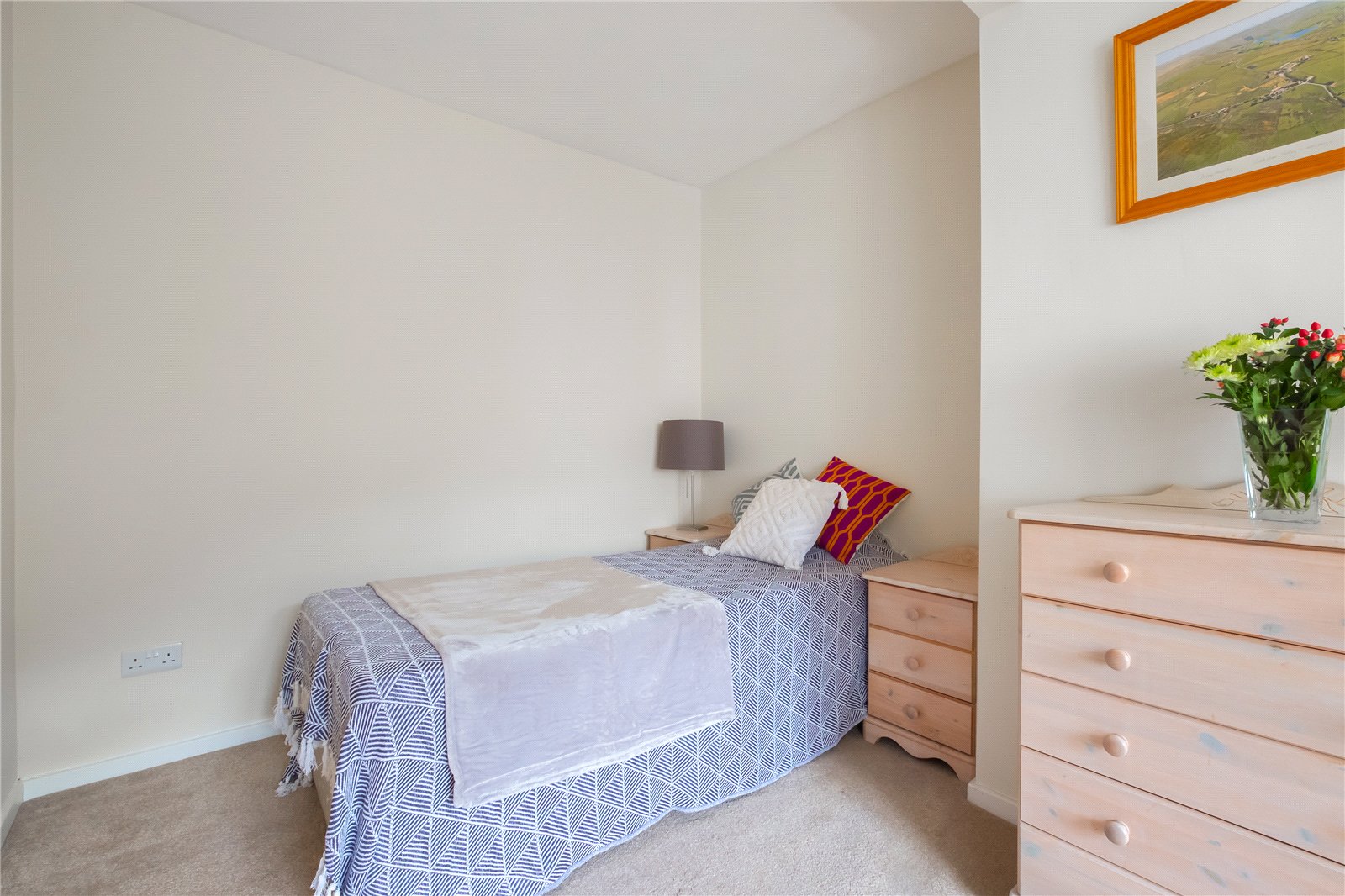 This double bedroom with good size wardrobe in the alcove, and included in the sale, benefits from a central heating radiator and double-glazed window giving an appealing Armitage Bridge village view.