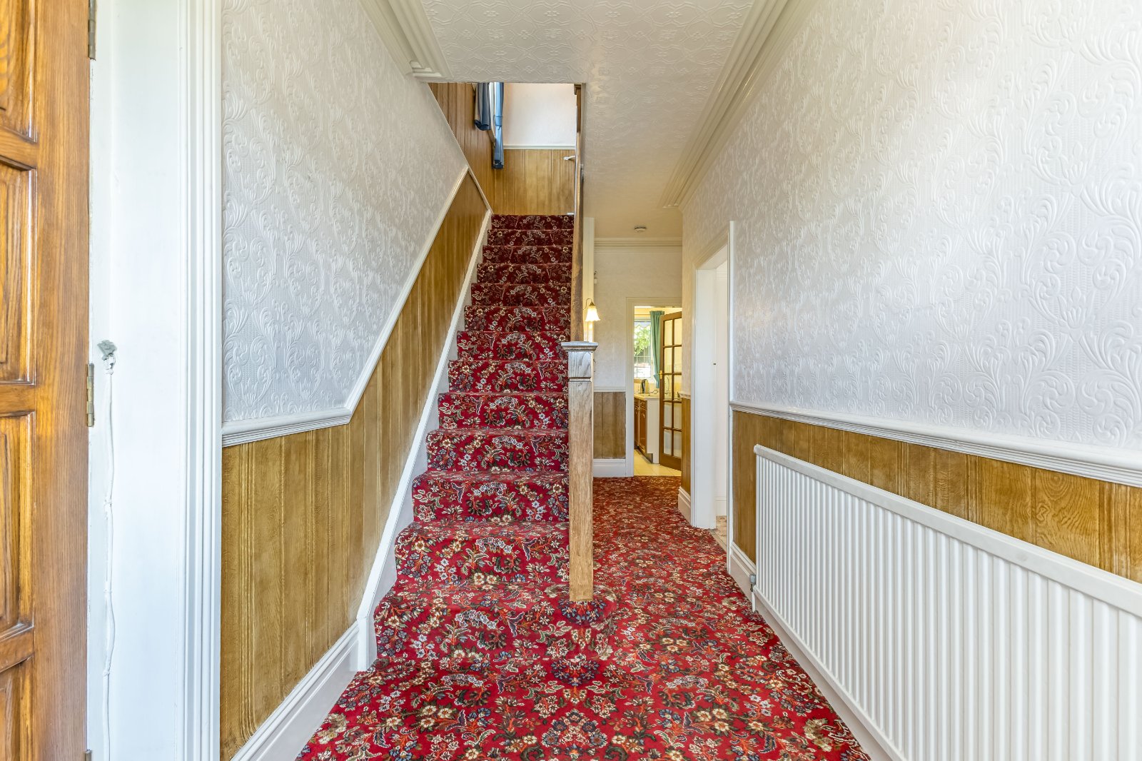 The property is accessed via a wooden entrance door from the open archway at the side of the house (between this house and next door). The hallway is particularly spacious and features a window to the front, stairs to the first floor with cupboard under and central heating radiator.