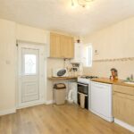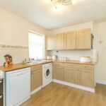Fitted with a range of wall and base units having ample worksurfaces over incorporating a stainless steel sink. There is space for various appliances, a wall mounted central heating boiler, tiled splashbacks, wood effect flooring, 2 windows to the rear, and an external door to the side.