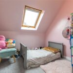 This compact room is currently used as a child’s bedroom, has a Velux window and central heating radiator.