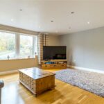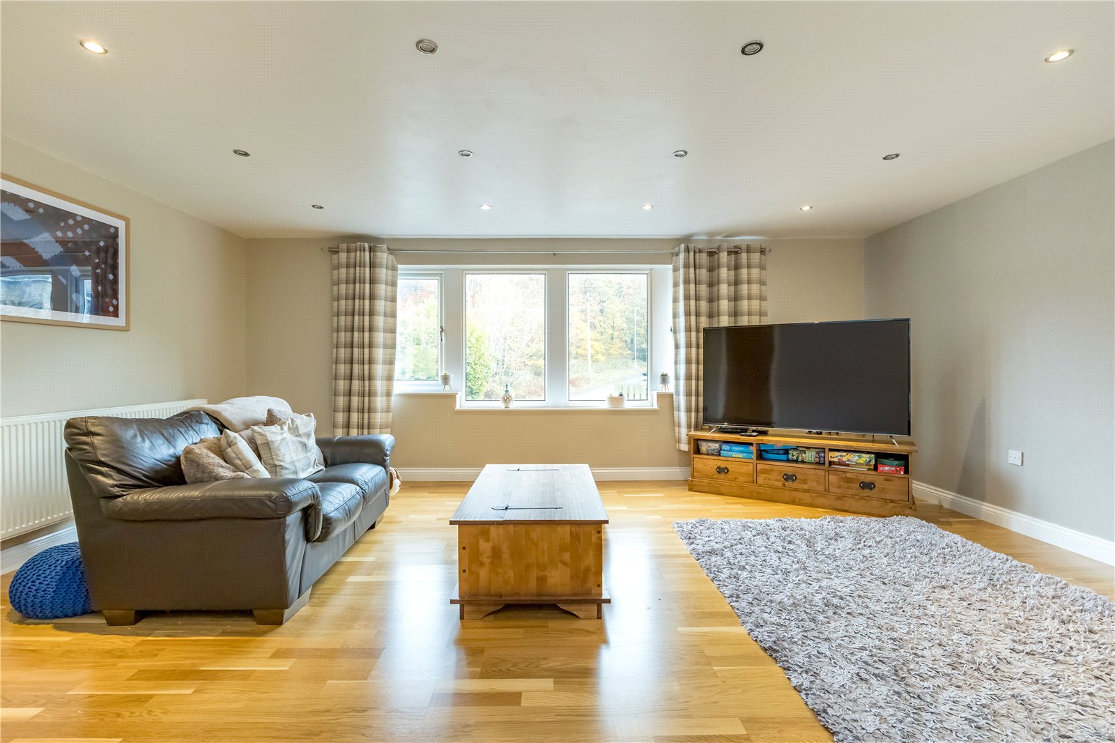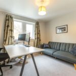 This generous room is located to the front of the property with a bank of windows to the front. There are inset spotlights to the ceiling, a central heating radiator and a further window to the side.