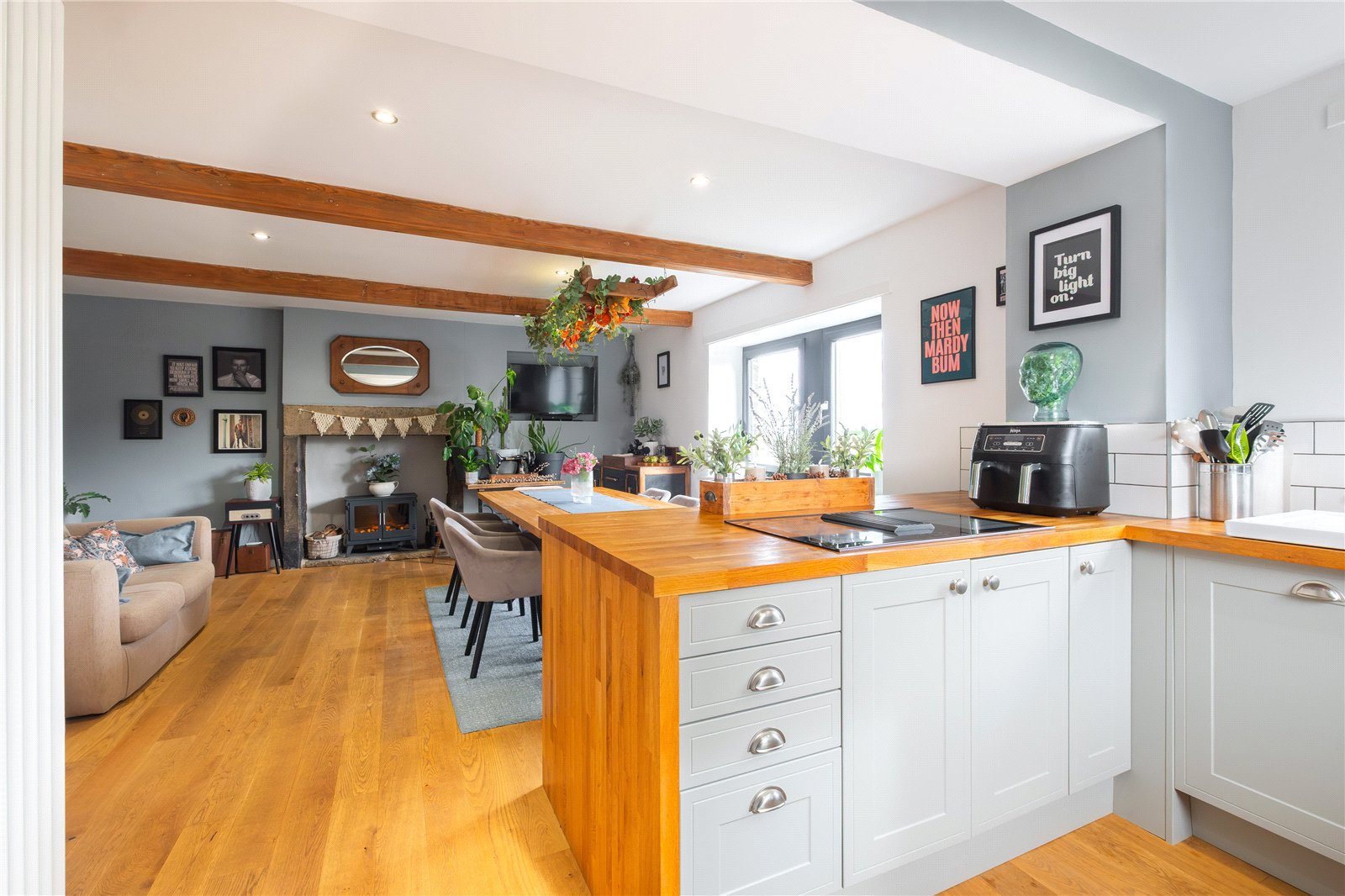 This unique end terraced property enjoys a pleasant location in the sought after village of Hepworth with outstanding rural views. It has been much improved by the present owners who have carried out an extensive scheme of modernisation and updating of fittings to create a stylish and flexible home. It is arranged over 3 floors and comprises: entrance porch, hall, open plan living / dining room and kitchen on the first floor; landing, 2 bedrooms and bathroom on the upper floor and a further bedroom / snug downstairs with wc and utility room. The property benefits from a gas central heating system, uPVC double glazing and modern fittings throughout. Externally, there are pleasant, easy maintenance garden areas to the front and side which again take advantage of the views. For sale with no vendor chain.