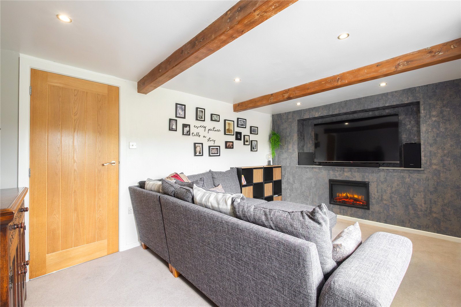 A flexible space which was formerly a double bedroom but is utilised by our clients as a snug / sitting room. It features windows to the rear enjoying the views, beams and spotlights to the ceiling, recessed space for wall mounted TV, inset electric fire, column radiator.