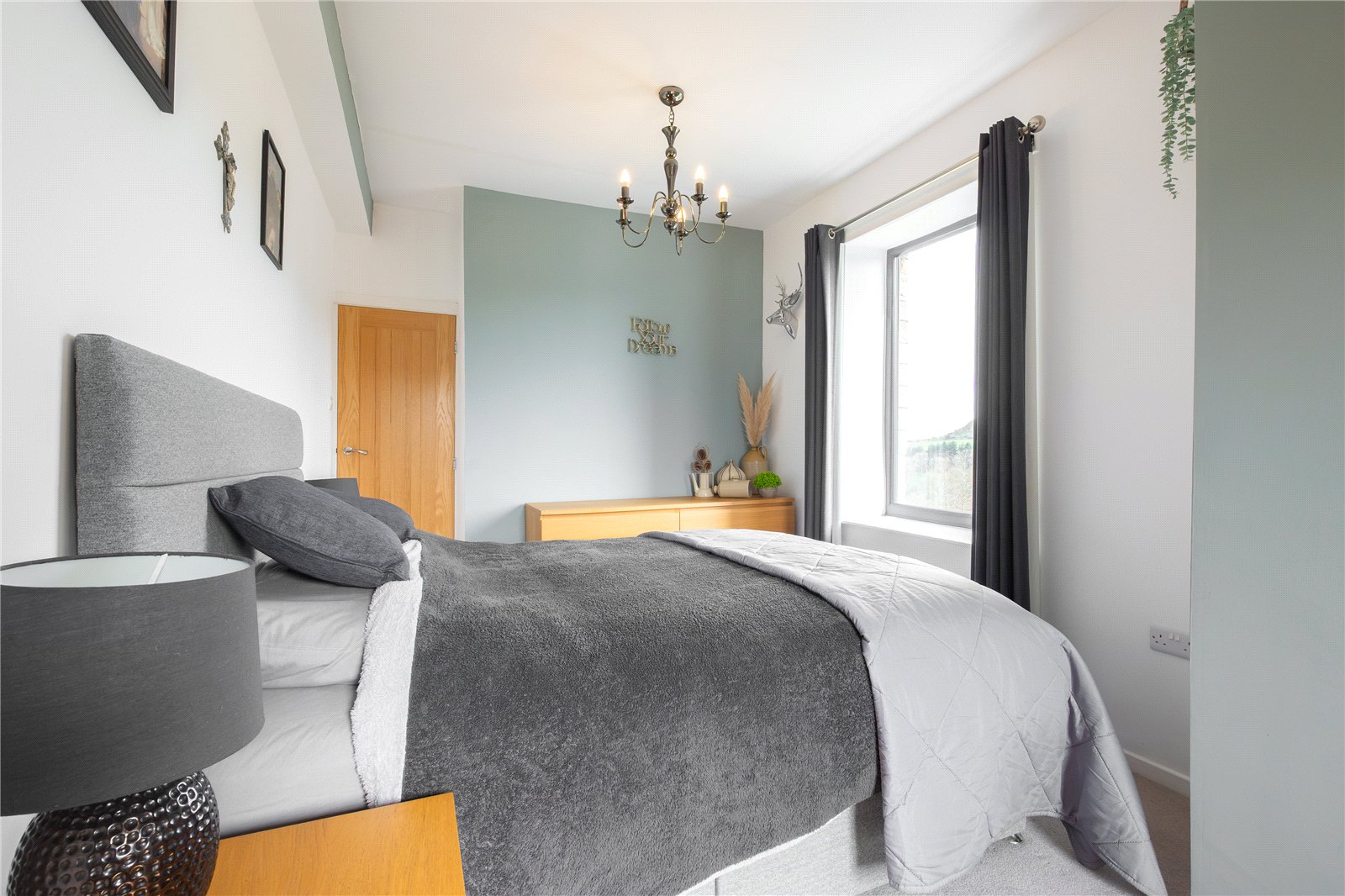 The kitchen is open plan to the living room with some of the fitted units extending into this area. It is fitted with an excellent range of fitted base units with solid wooden worksurfaces, Belfast sink with mixer tap, integrated oven, induction hob with extractor and fridge freezer. There are windows to the front and side enjoying the views, wooden floorboards and column radiator.