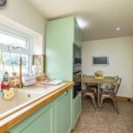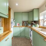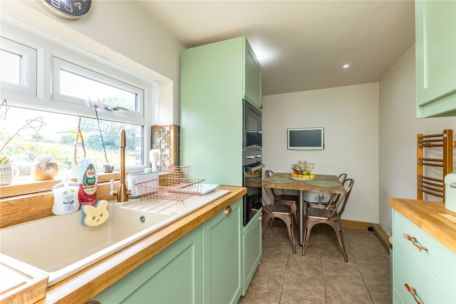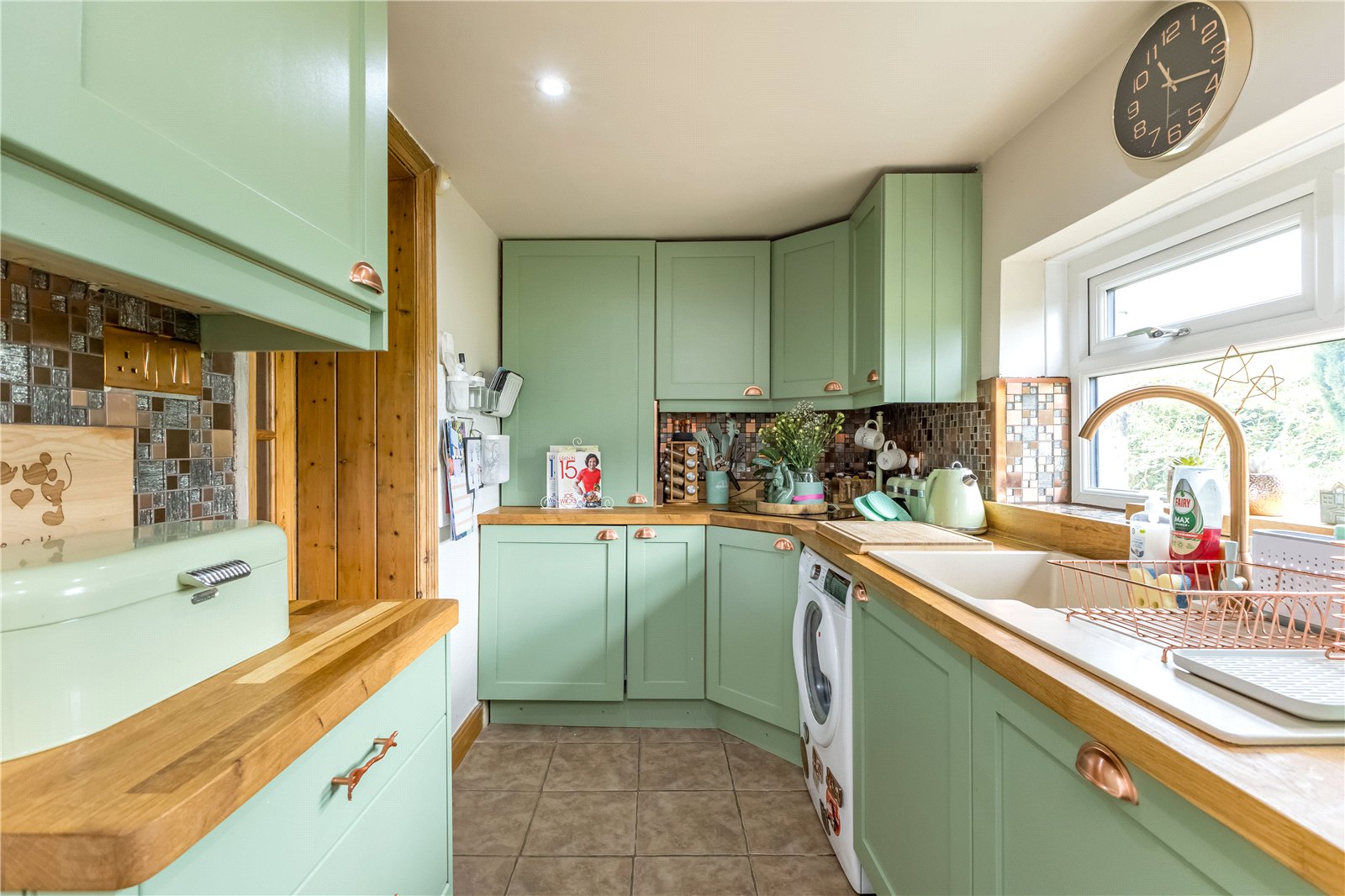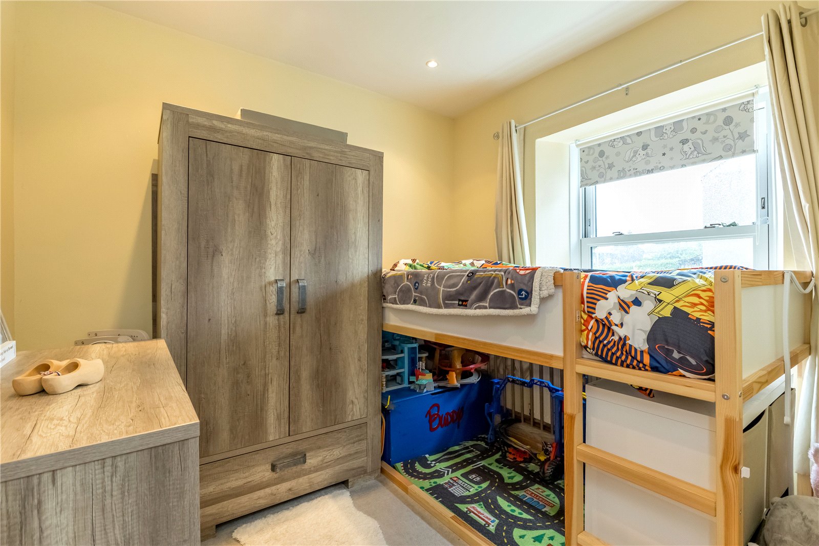 Nicely fitted with a range of modern wall, drawer and base units with ‘butcher’s block’ work surfaces which incorporate a composite sink with mixer tap. Integrated appliances include a dishwasher, fridge, oven, microwave, and a 2-zone induction hob. The kitchen also has tiled splashbacks, tiled floor with under floor heating, inset ceiling spotlights, cupboard housing the central heating boiler, and window to the rear offering views over the adjoining fields.