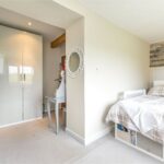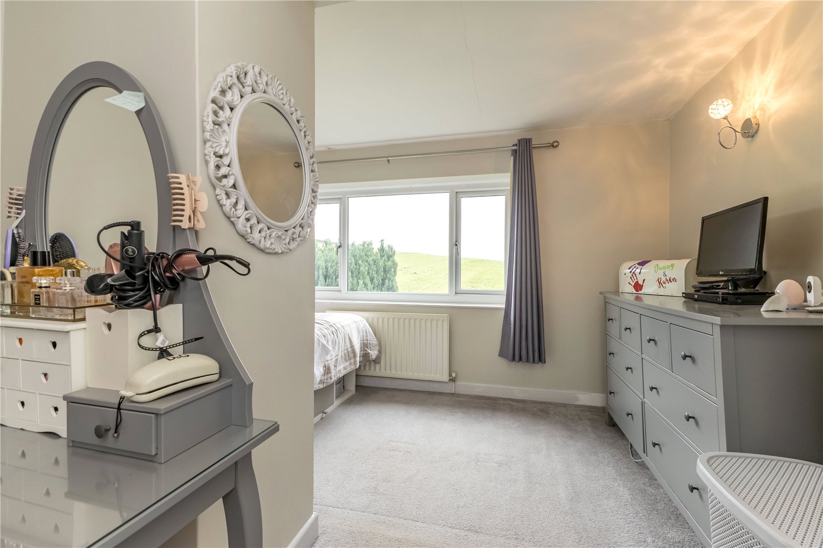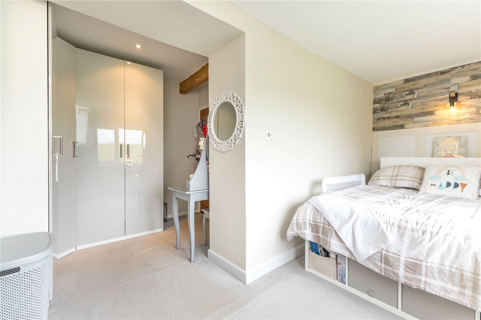 The initial part of the bedroom is used as a dressing area where the current owners have their wardrobes. An opening takes you through to the rest of the bedroom with a window to the rear offers views over the fields and far beyond, and there are exposed beams to the ceiling.