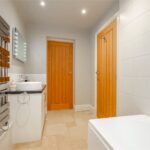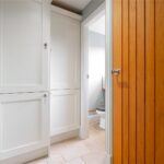 Housing the Ground Source Heating unit with combined hot water cylinder. Additional storage housing the clients washing machine, tumble dryer and a separate cupboard for additional storage. Limestone tiled floor.