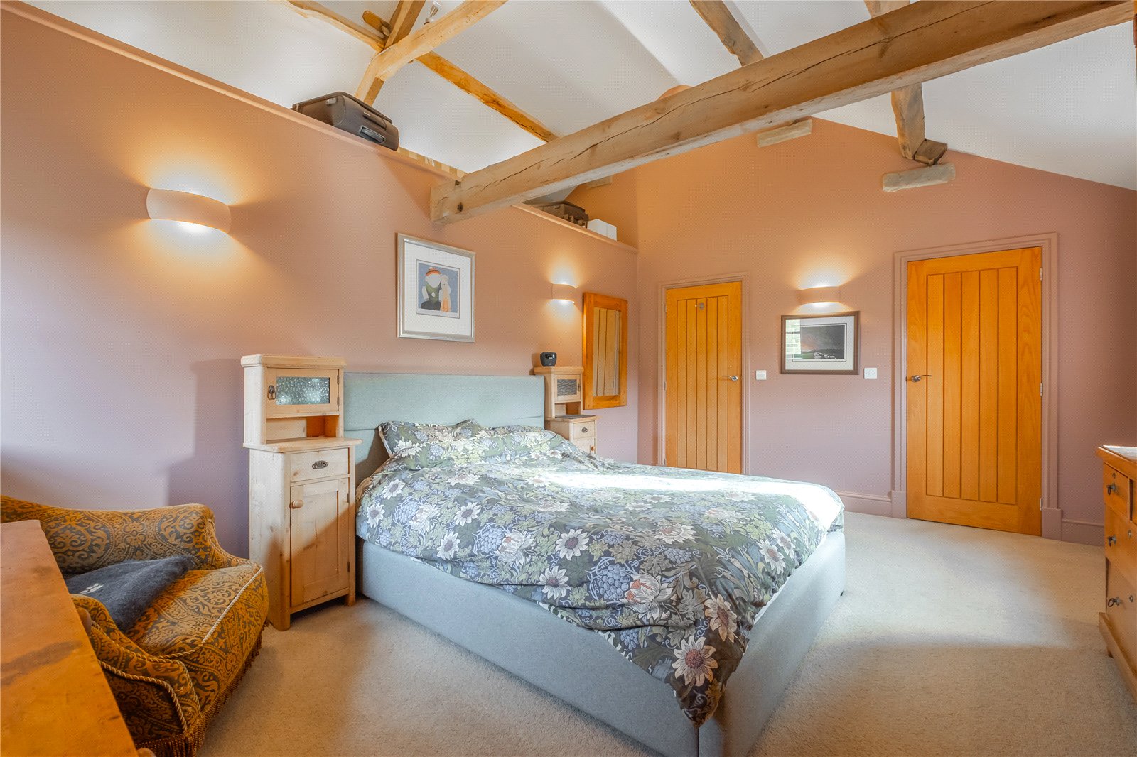 Enjoying a superb tucked away setting down a little known lane, this impressive Grade II Listed converted barn is the end of 3 properties in the row. It is set within large grounds extending to approximately 2.78 acres and enjoys wonderful far-reaching views. The property offers spacious 3 bedroom (plus study) accommodation and has an additional detached barn / garage, generous gardens, parking and grazing land.
