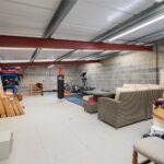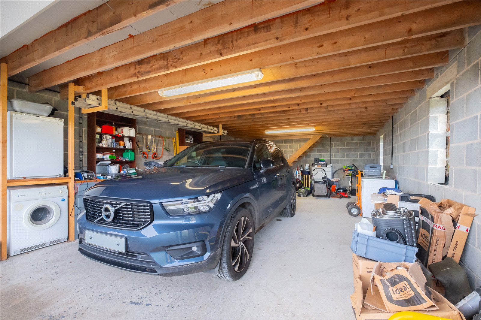 A substantial stone building positioned to the side of the house. This features a large garage / workshop space on the ground floor with remote controlled roller shutter door to the front, personnel access door to one side and windows to the other. It has mains water supply, electric light and power supply, soil stack connected to septic tank for future toilets and sinks. Wooden stairs lead to the upper floor where there is a large open space, with slightly restricted head height at one side beneath the single pitch roof. This offers the scope to be utilised for a variety of purposes such as a gym, studio or home office.