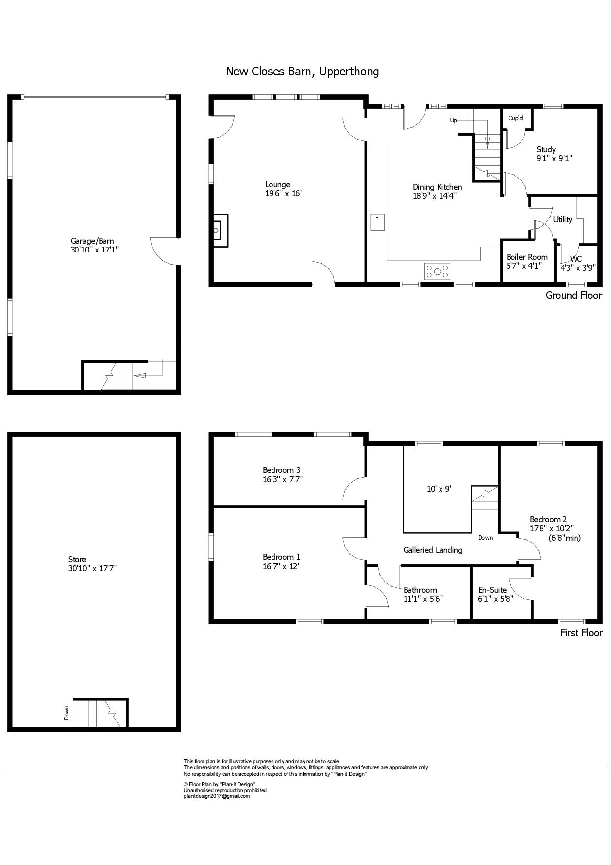 Stairs from the kitchen lead to the first floor where there is a galleried landing which features stunning roof trusses set upon stone details. From here you can access the 3 good sized double bedrooms. The principal bedroom has a high angled ceiling and access to an open mezzanine loft space. This room is en-suite to the main bathroom which is shared with bedroom 3. Bedroom 2 has its own en-suite shower room.