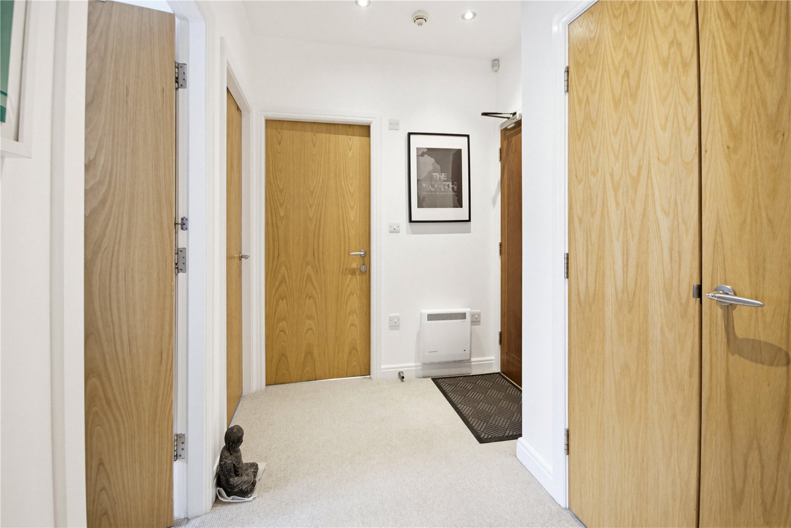From the second floor landing area (which is shared with 3 other properties) there is a wooden entrance door into the private hallway. This features a cupboard housing the hot water boiler and provides access to each of the rooms.