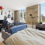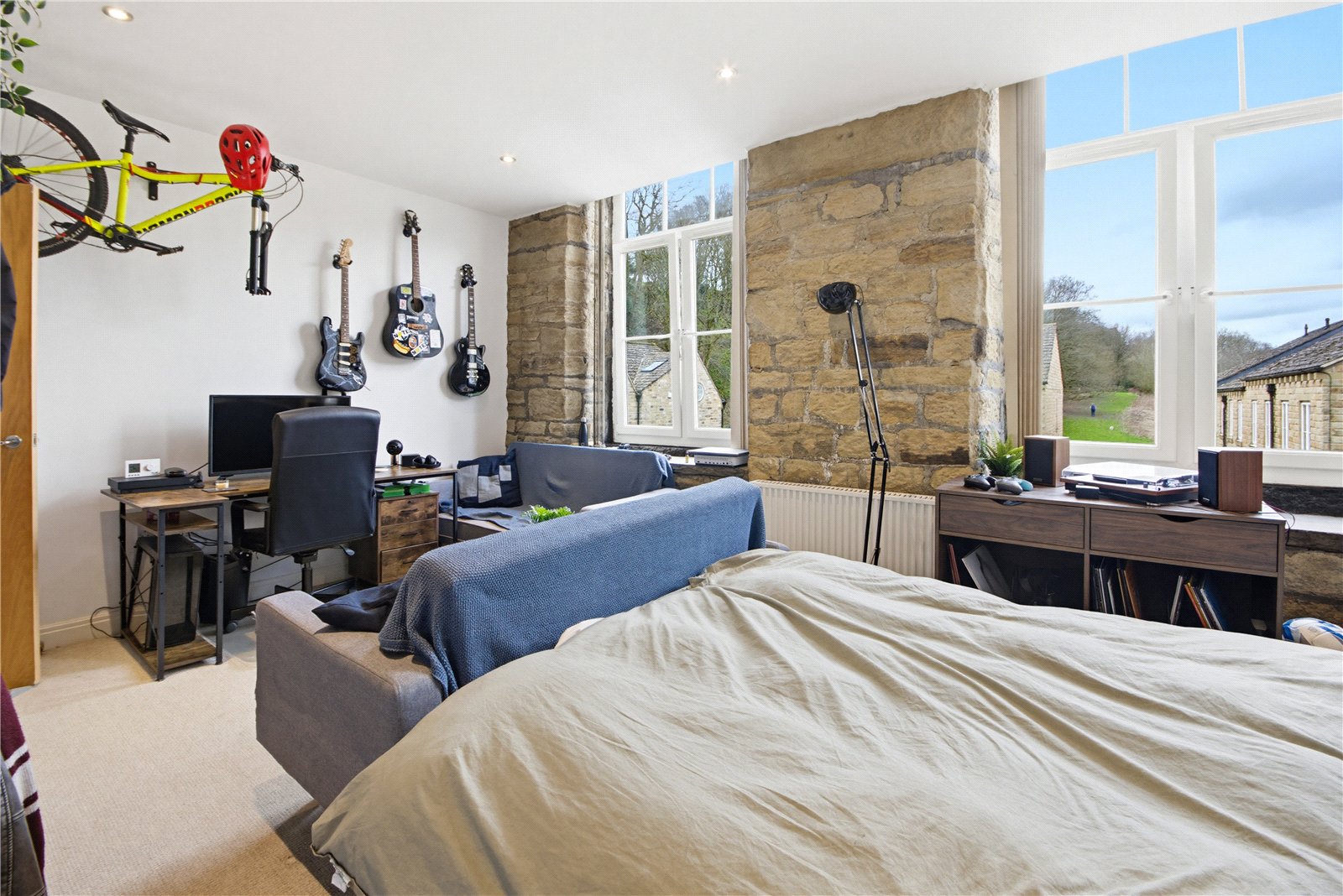 A large double bedroom with exposed stonework and 2 windows to the rear elevation, enjoying the views, electric heater.