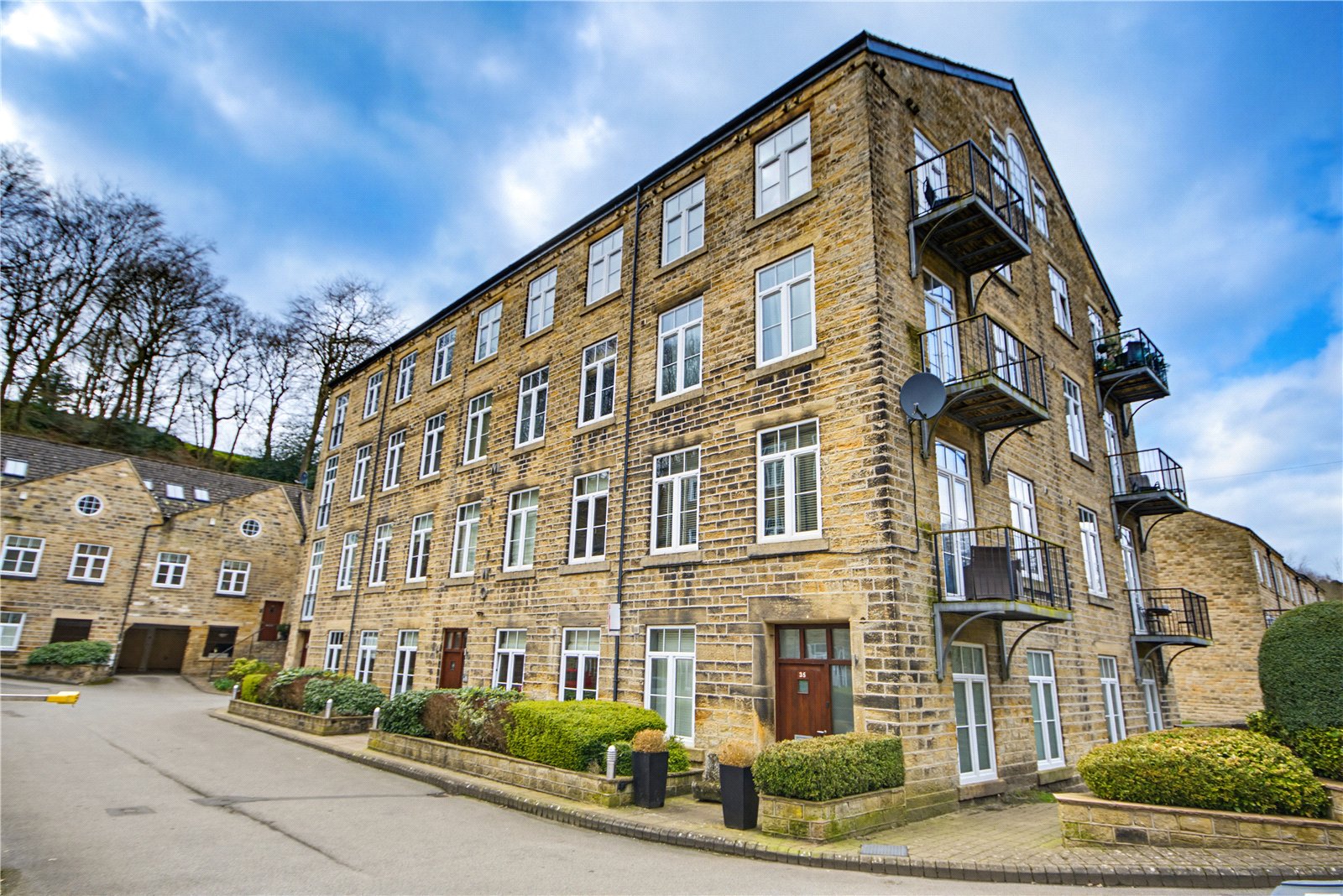 A superb opportunity to purchase this spacious second floor apartment with lift access in a highly sought after mill conversion. Its elevated position enjoys pleasant views over the development and its extensive grounds. The apartment comprises: entrance hall, large open plan living / dining / kitchen, 2 double bedrooms, bathroom and en-suite. It is well presented throughout with modern fittings and electric heating, with recently upgraded, energy efficient radiators in the living room and main bedroom, complimented by traditional exposed stonework and a wealth of natural light from its array of uPVC double glazed windows. There is an allocated parking space at the rear of the building and further visitors parking on site.